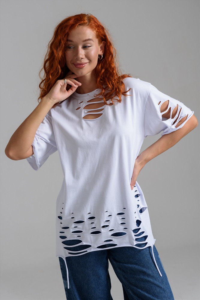 Состав: 95% х/б 5% эластан Модель: 7475 Футболка женская Тип товара: футболка Материал: кулирка с лайкрой | кулирка с лайкрой Бренд: Ifeizion Отделка: с бахромой Рейтинг: Рейтинг 4 и выше Рисунок: однотонные Рукав: короткий рукав Сезонность: лето | осень | весна | зима Силуэт: оверсайз | свободный Стиль: повседневный Эта женская футболка оверсайз прекрасно подойдет как для повседневной носки, так и для создания стильного образа. Модель выполнена из мягкого хлопка, обеспечивая комфорт в носке. Оригинальный дизайн с рваными элементами добавит вашему образу дерзости и индивидуальности. Стильная модель нирвана подойдёт для высоких и невысоких, для полных и худых, и даже plus size. Таблица размеров и веса