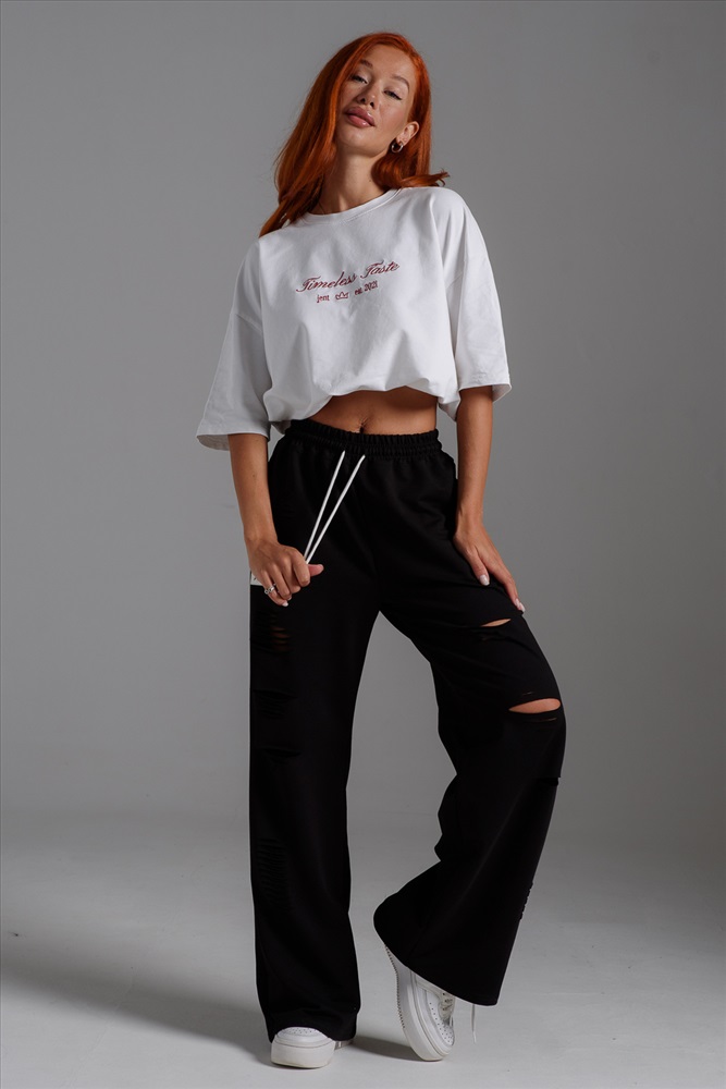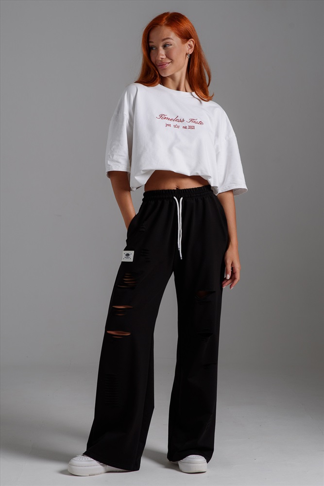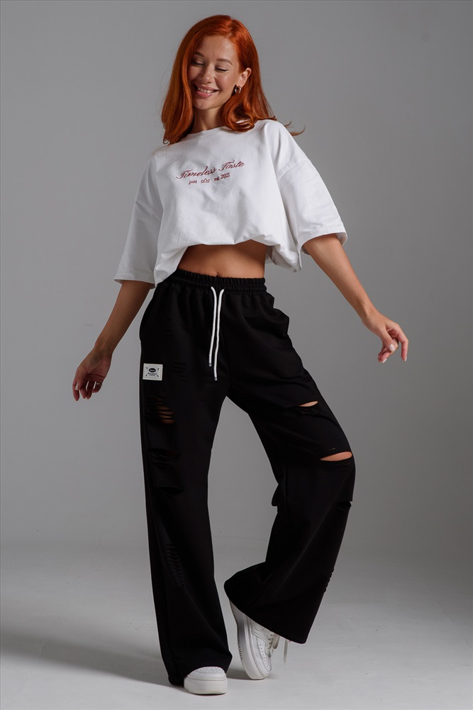Застежка: без застежки Стильные женские спортивные штаны с прорезями в уличном стиле. Штаны на резинке с комфортной посадкой созданы для ярких девушек, ценящих удобство и моду. Идеально подходят для прогулок, дома и активного отдыха. Рваные детали добавляют дерзости образу, а свободный крой гарантирует комфорт на каждый день. Карго - то, что нужно для модного гардероба! Оверсайз штаны на резинке идеально подойдут как для подростков, так и для женщин. Создай модный лук с хлопковыми кэжуал брюками. Необычные широкие дырявые джоггры с высокой талией подчеркнут твою индивидуальность. Выбери casual штаны с гранж акцентами для танцев или фитнеса будь всегда на пике тренда. Стильная спортивка с прорезями для девушек отличный выбор для демисезона и весенних прогулок. Почувствуй свободу движения!