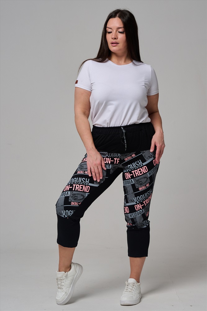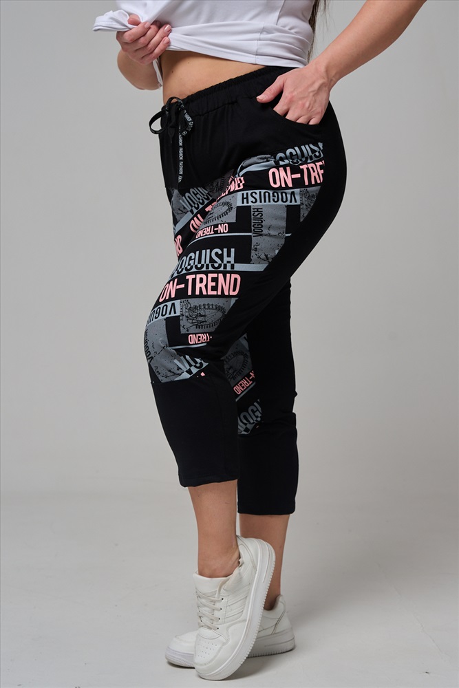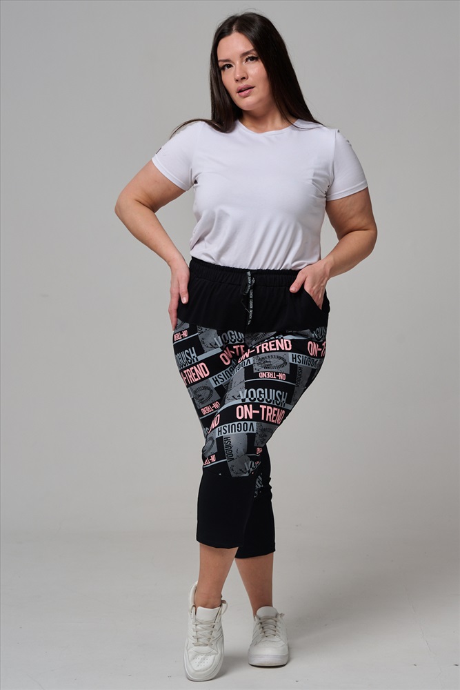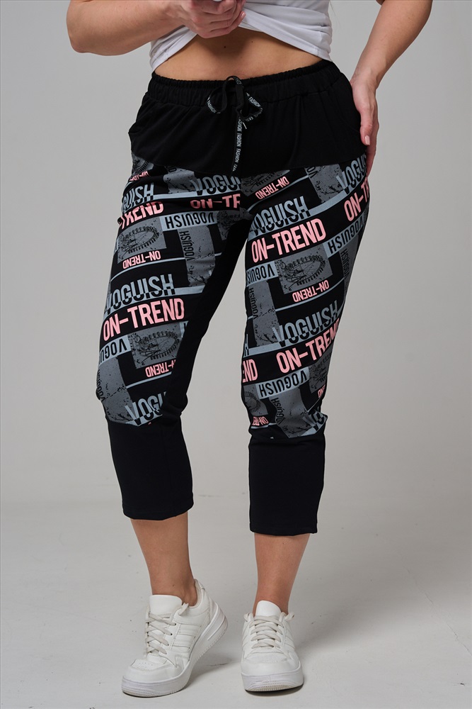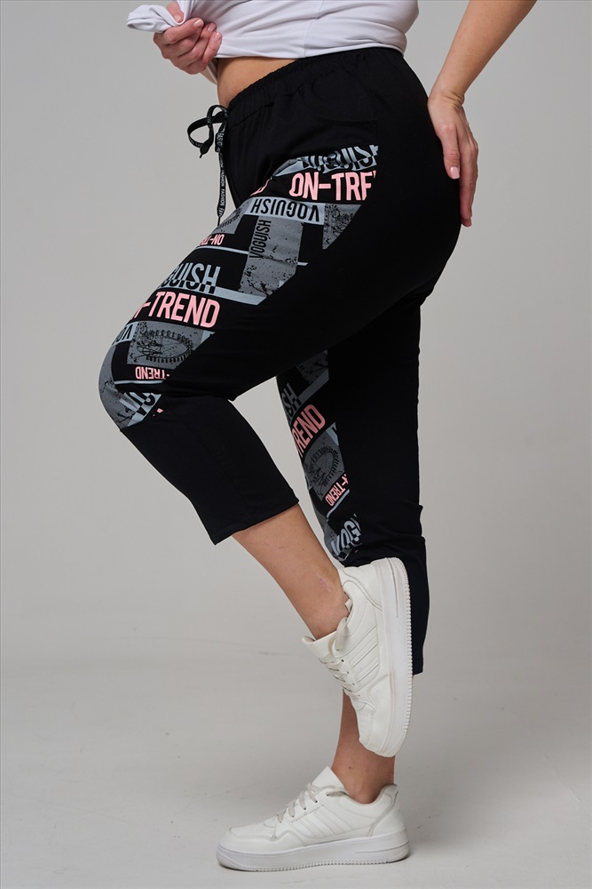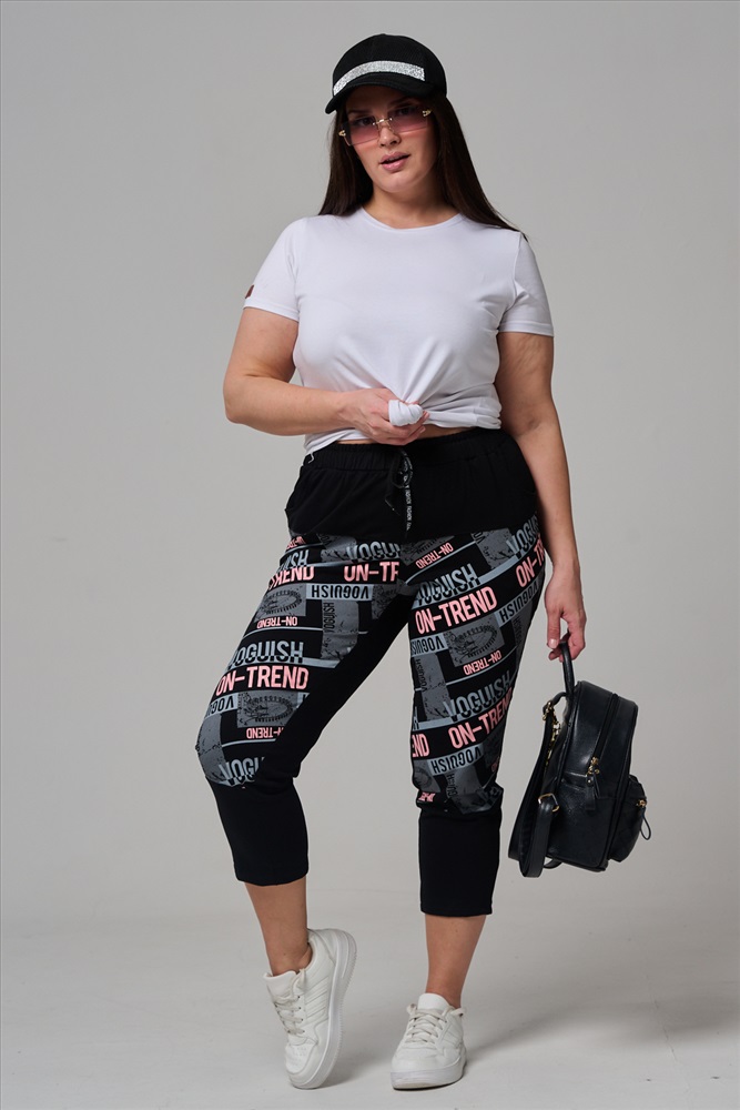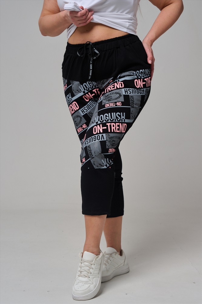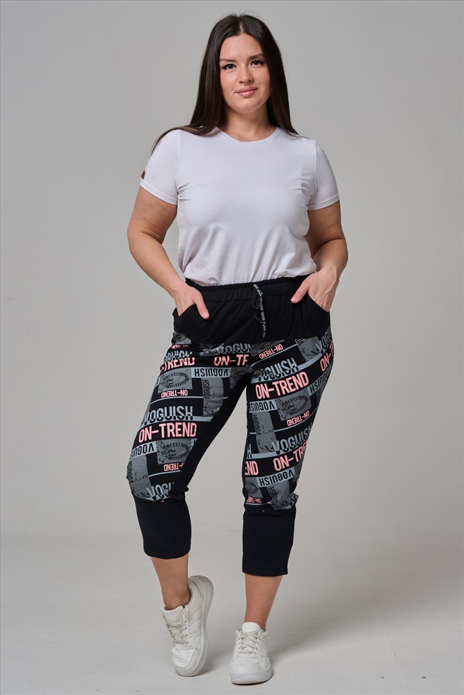 Стиль: повседневный Брюки женские, свободные по бедрам, зауженные к низу. Спереди внутренние карманы, пояс эластичный со шнуром. На передних половинках брюк принт. Идеальны для повседневной носки.