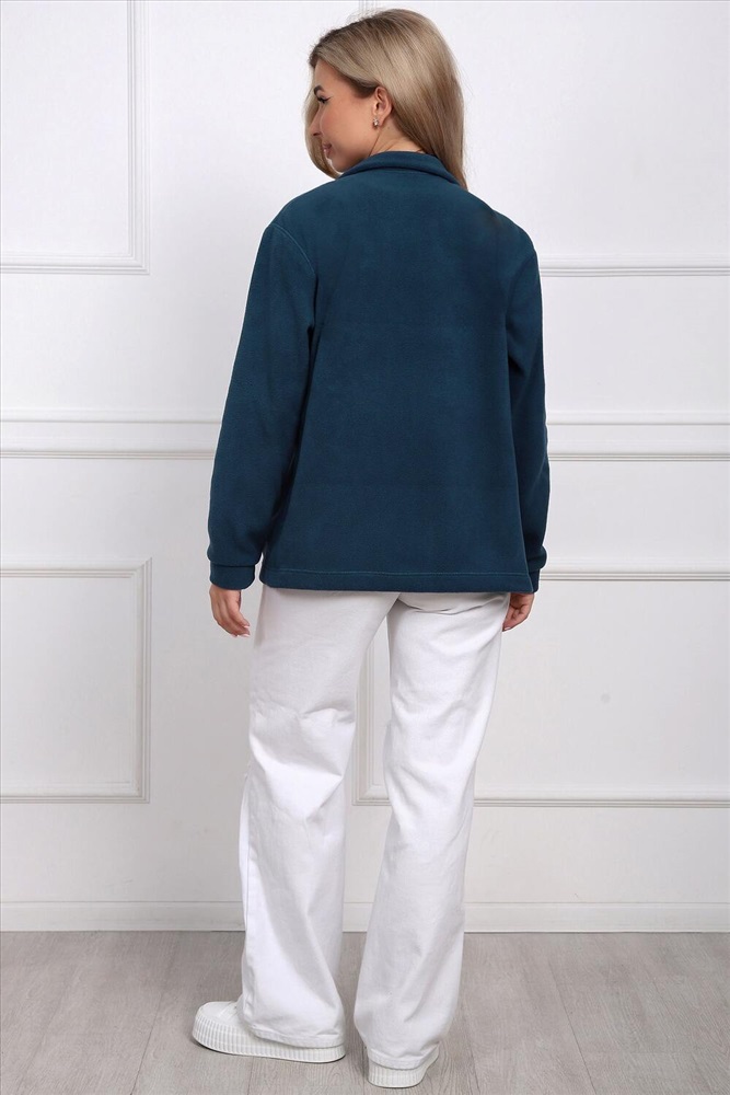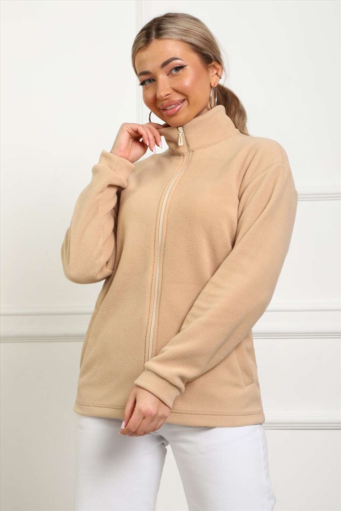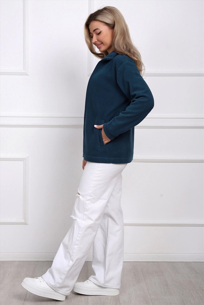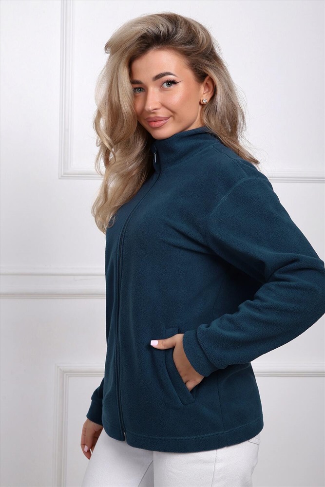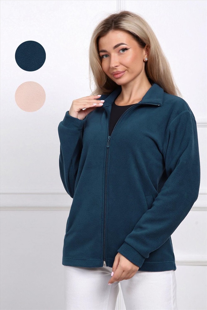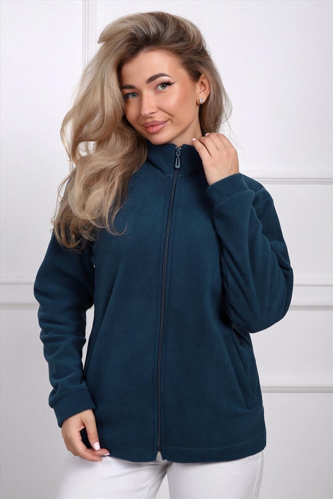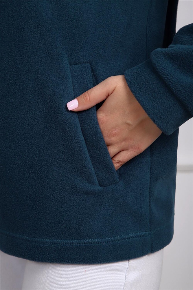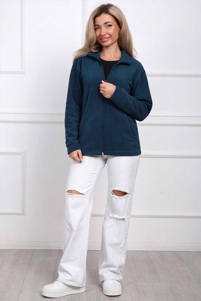 Застежка: молния Куртка женская из флиса. Силуэт прямой. Длинна до середины бедра. Воротник стойка. Карман листочка. Рукав втачной, на манжете. Линия плеч чуть спущена. Застежка на тесьму молнию. Отделкой служат отделочные строчки с застилом.