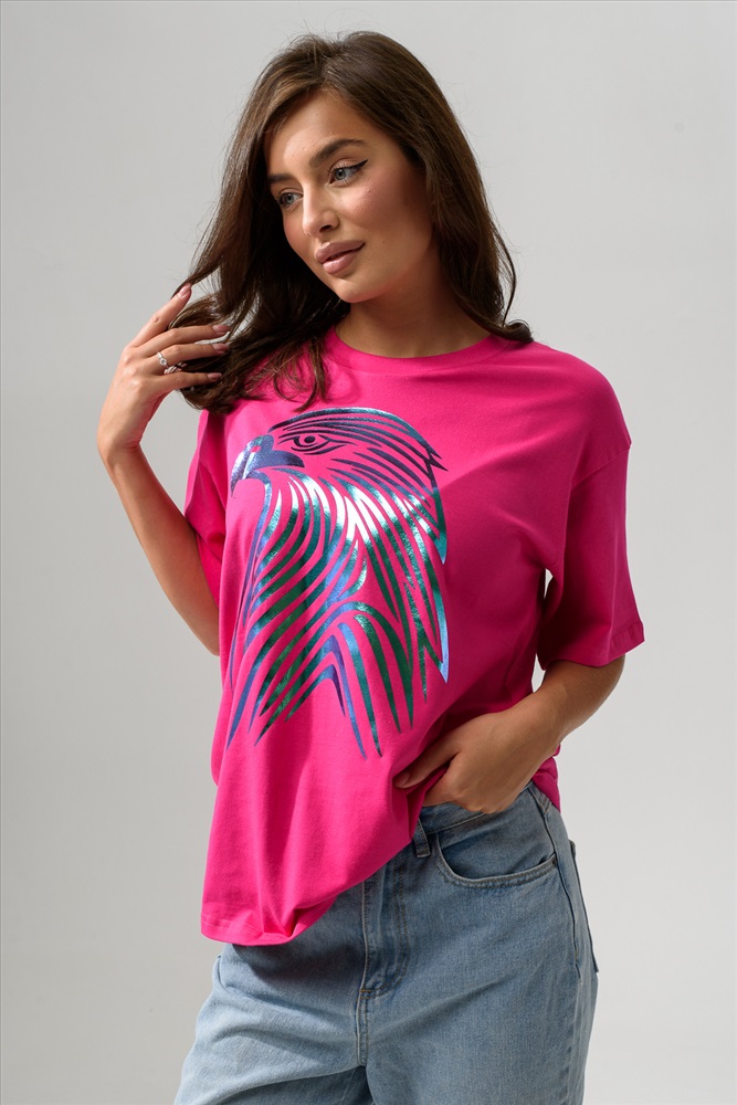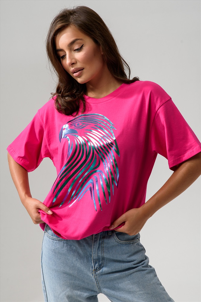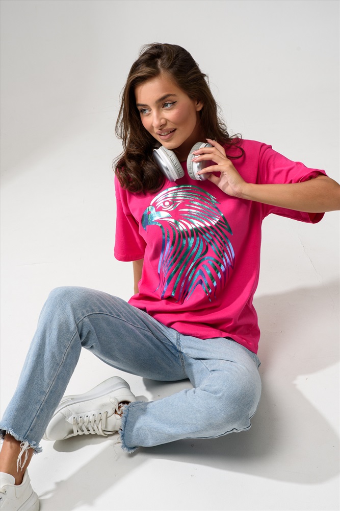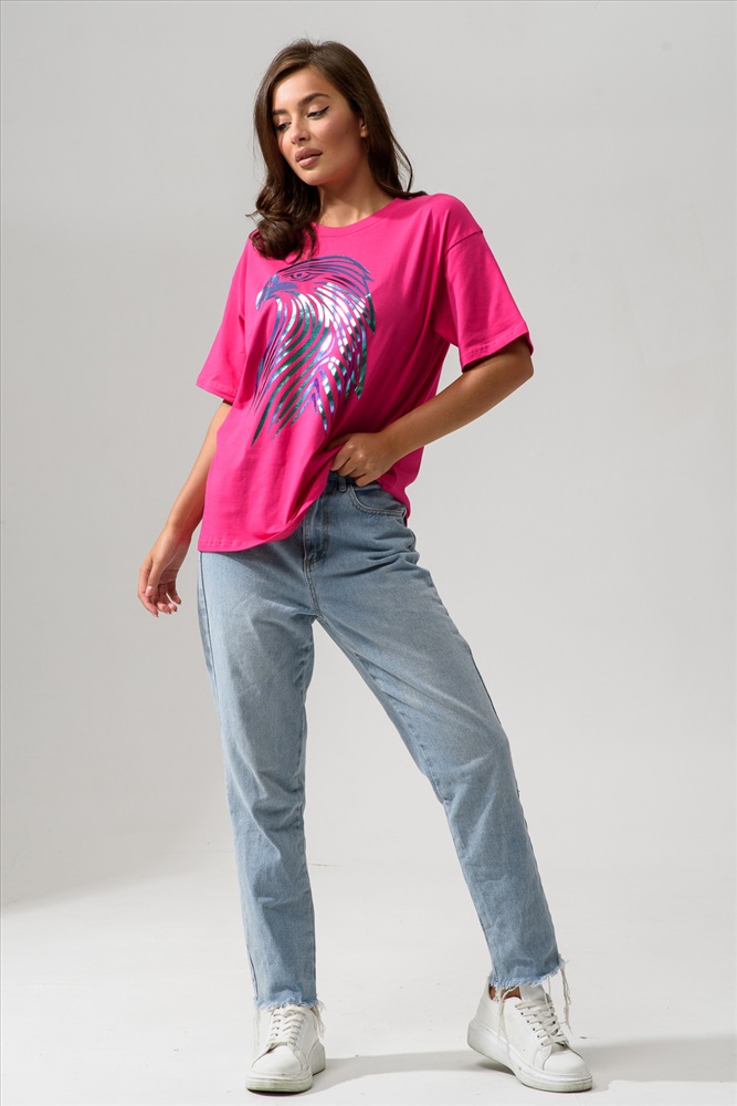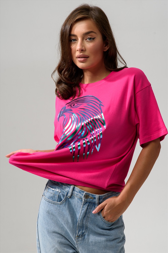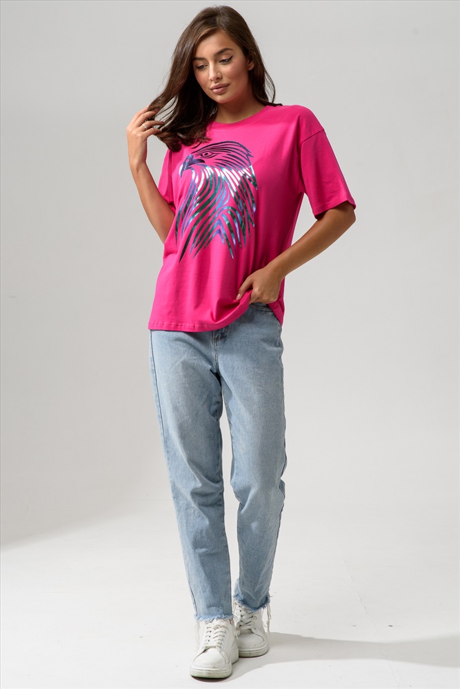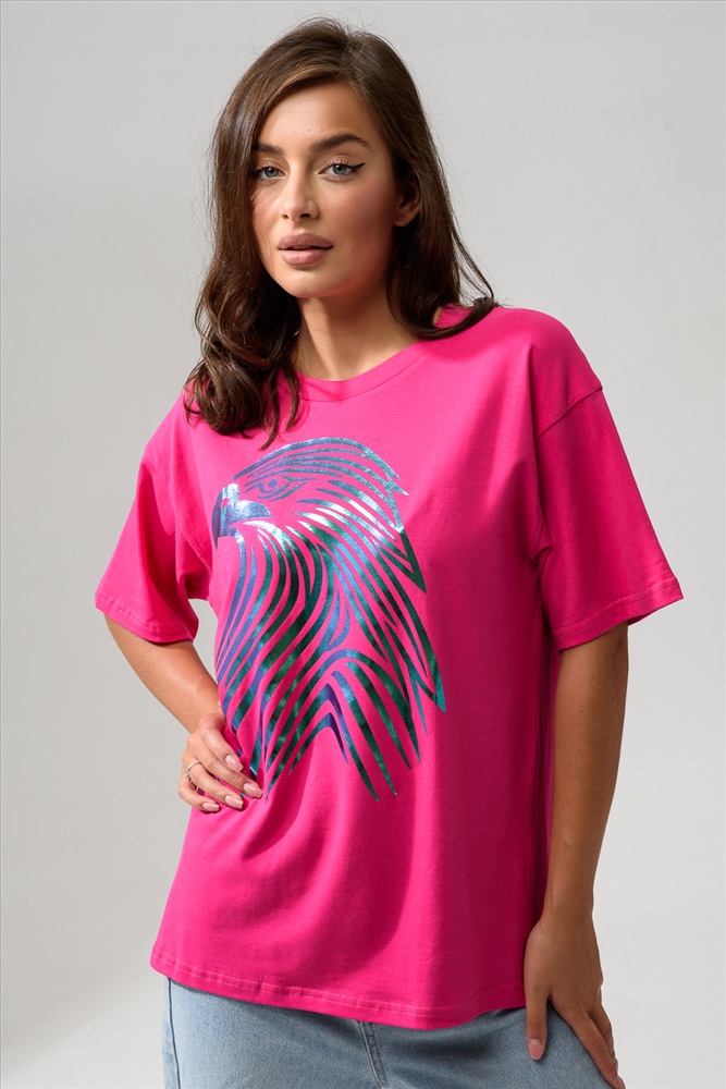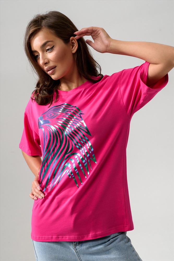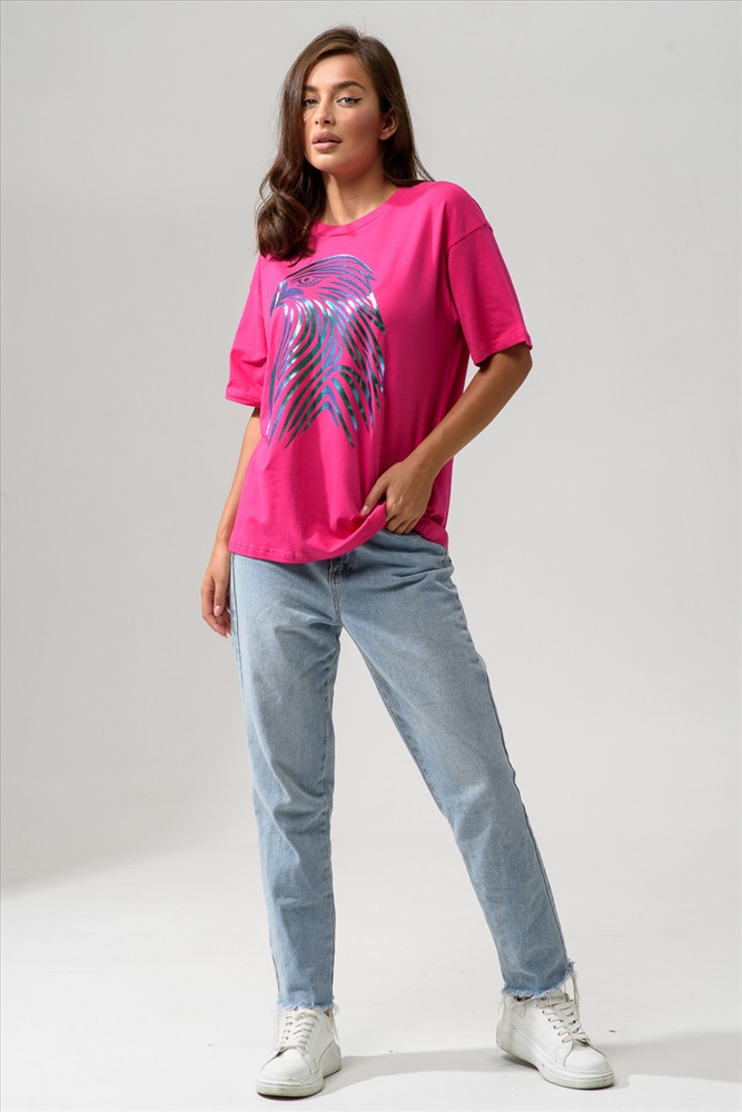 Состав: 92% х/б 8% эластан Модель: 8555 Футболка оверсайз женская Тип товара: футболка Материал: кулирка с лайкрой Бренд: Натали Суслова Отделка: с печатью Рисунок: хищники | зверюшки Рукав: короткий рукав Силуэт: прямой | свободный Стиль: повседневный Женская футболка оверсайз это идеальный выбор для девушек, которые любят сочетать комфорт и стиль. Стильная и качественная, она доступна в любом размере, включая большой до 56. Свободный крой подойдет в том числе и для беременных женщин. Высокие стандарты качества делают её универсальным элементом гардероба, подходящим для создания модных повседневных образов. Она идеальна для взрослых и подростков, предпочитающих спортивную и яркая одежду. Высокая плотность ткани 200гр/куб.м. Принт фольга хамелеон или серебро - может попасться без выбора. Таблица размеров и веса