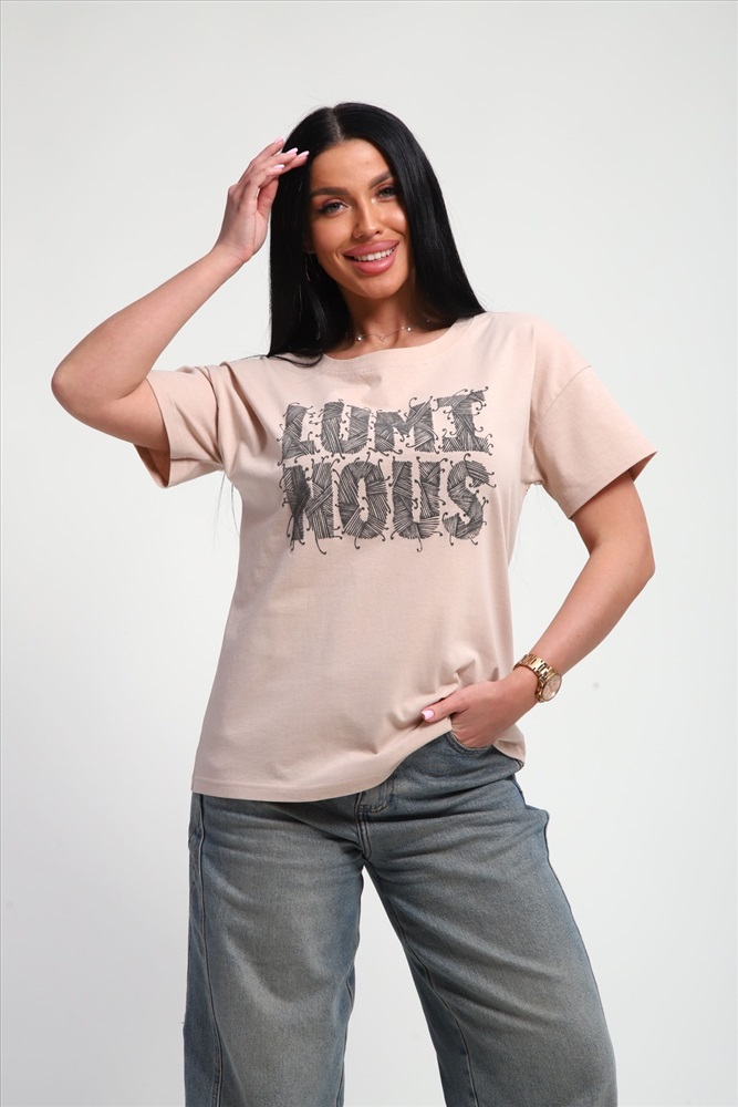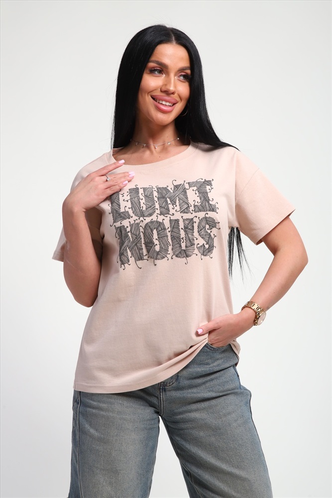 Состав: Хлопок 100% Модель: 85661 футболка женская Тип товара: футболка Материал: кулирка | кулирка Бренд: Натали Суслова Карман: без карманов НДС: Без НДС Рисунок: надпись Рукав: короткий рукав Сезонность: лето | осень | весна | зима Силуэт: свободный Стиль: домашний | повседневный Воротник: без воротника Застежка: без застежки Футболка женская из гладкокрашенного трикотажа, хлопок 100%. Прямого силуэта, свободного облегания. горловина круглой формы. Рукав короткий. Низ изделия прямой. На полочке объемный принт, шелкография. Таблица размеров и веса