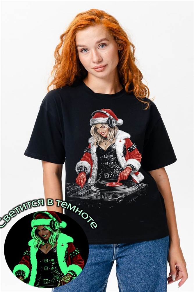 Состав: 92% х/б 8% эластан Модель: 8587 футболка оверсайз женская Тип товара: футболка Материал: кулирка с лайкрой | кулирка с лайкрой Бренд: Натали Суслова Особенности: светится в темноте Отделка: с печатью Рейтинг: Рейтинг 4 и выше Рисунок: крупный принт | новогодний | разное Рукав: короткий рукав Сезонность: лето | осень | весна | зима Силуэт: свободный Стиль: повседневный Черная футболка с ярким принтом DJ в стиле новогодней вечеринки идеальный выбор для тех, кто любит быть в центре внимания! Необычный дизайн с изображением девушки-диджея в Санта-костюме дополнен эффектом светящегося рисунка в темноте, который создаёт вау-эффект на любой вечеринке или ночной прогулке. Удобный свободный крой и мягкий хлопковый материал обеспечивают комфорт в течение всего дня. Стильно, креативно, незабываемо! Таблица размеров и веса