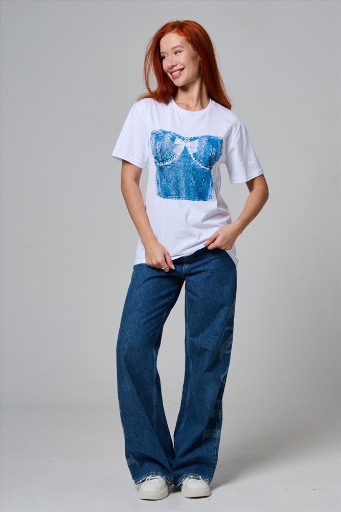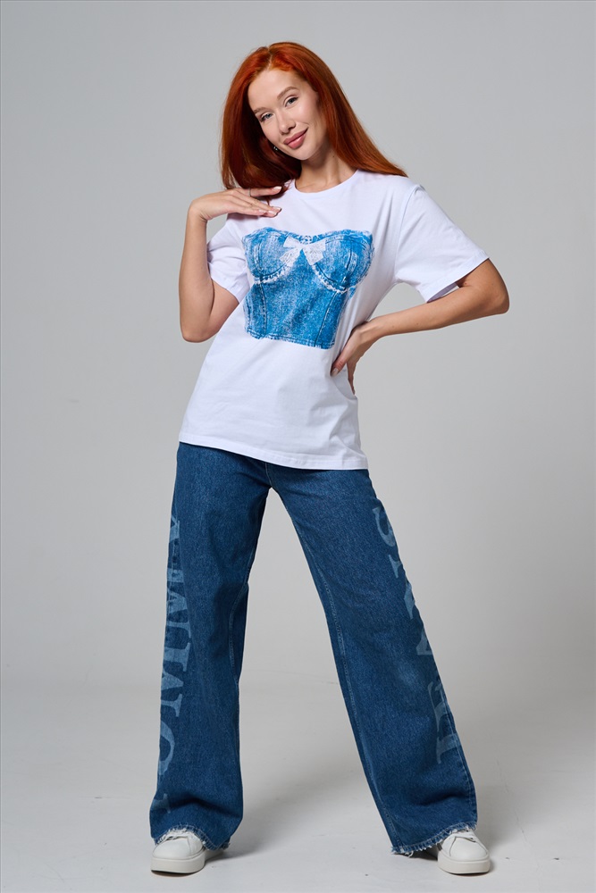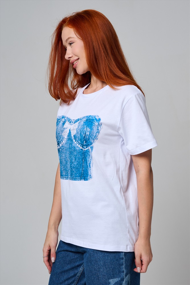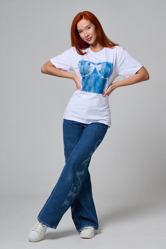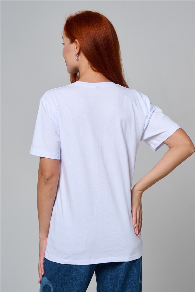 Застежка: без застежки Добавь в свой гардероб изюминку! Белая футболка с необычным принтом привлекает взгляды и подчеркивает твою индивидуальность. Выполнена из приятного к телу хлопка идеальный вариант для стильных и смелых образов на каждый день. Эта футболка легко сочетается с джинсами или юбкой и дарит максимум комфорта. Будь в центре внимания всегда!