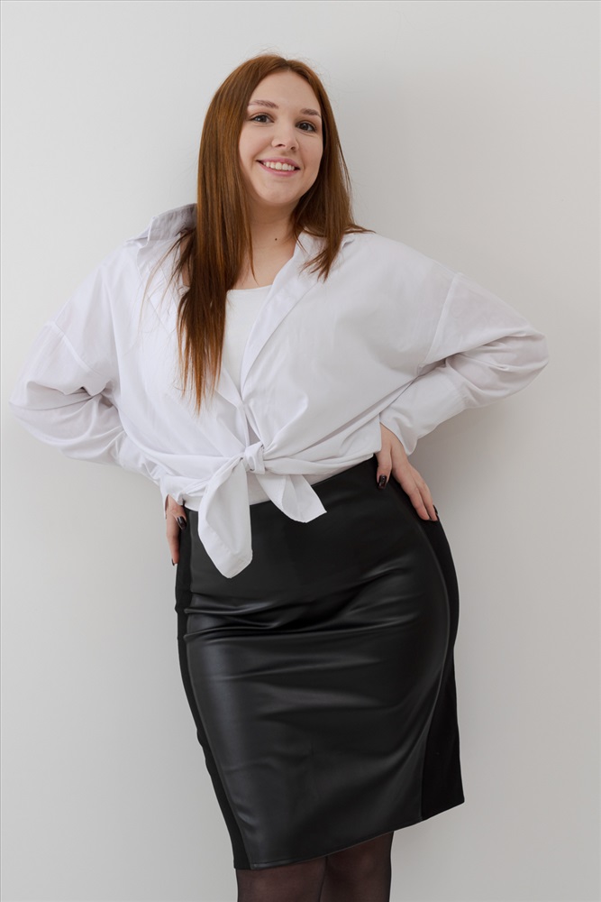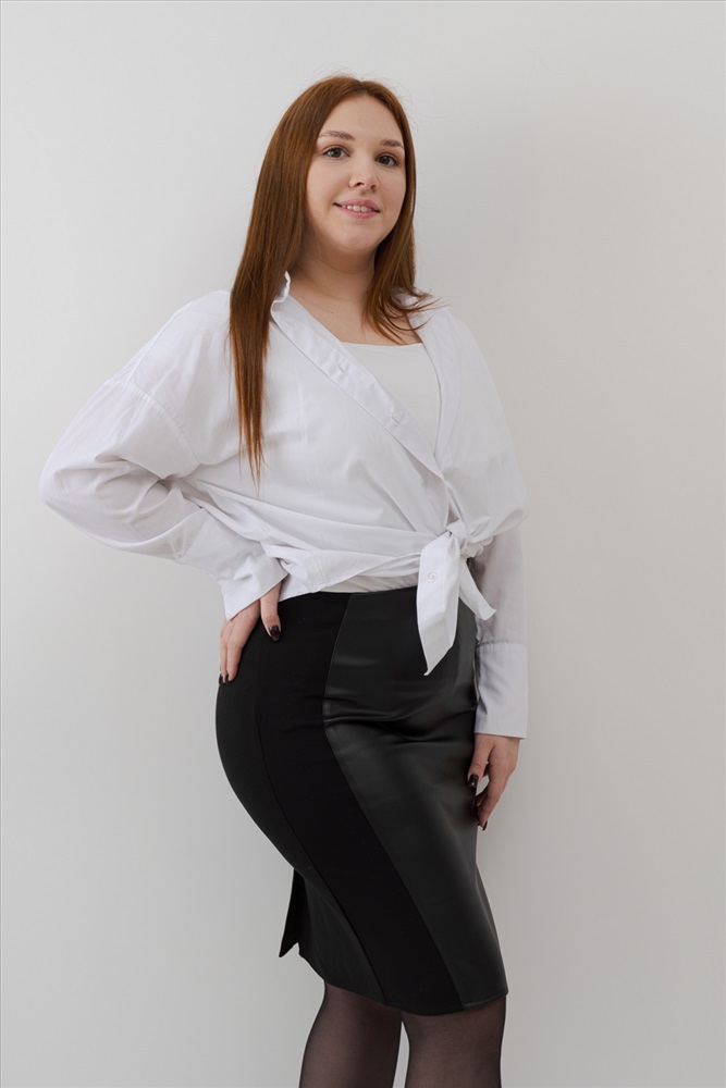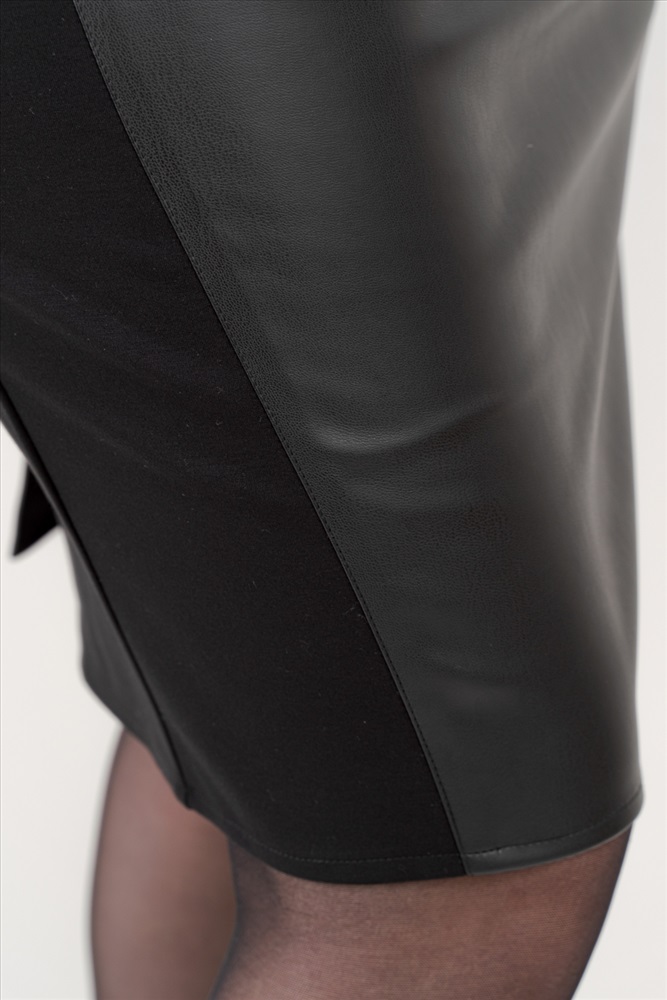 Стиль: офисный | повседневный Элегантная базовая женская юбка со вставками из экокожи является основой гардероба каждой девушки. Благодаря завышенной посадке и идеальной длине юбка подходит для любой фигуры, скрывает небольшие недостатки и подчеркивает талию, удлиняет ноги и прекрасно стройнит. Такая юбка отлично подойдет в офис, на работу, на свидание, на прогулку или праздник. Универсальная черная женская юбка будет отлично сочетаться с блузкой, рубашкой, свитером, кардиганом, футболкой, лонгсливом, пиджаком, плащом или пальто. В такой юбке вам будет удобно и комфортно, ведь изнаночная сторона выполнена из приятного материала, который не собирается и не комкается. Приобретайте стильную юбку и будьте уверены в красоте своего образа!