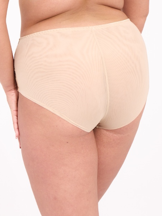 Состав: полиамид 70%, эластан 20%, хлопок 10% Женские трусики classic A-64 выполнены из сетки с принтом с вышивкой бежевой нитью и люрексом, спинка из сложенной вдвое телесной сетки, ластовица проложена 100% хлопком. Идеальный вариант для повседневной носки, сочетаются с бюстом A-64.