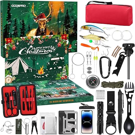 Advent Calendar 2025, Survival Kit for Men, 24 Days Christmas Countdown Advent Calendar, Unique Christmas Gifts for Men Dad Husband, Holiday Surprise Gifts for Fishing Hunting Hiking