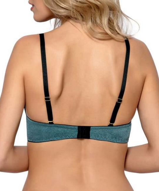 Бюстгальтер из коллекции Agnes: чашки формованные, с несъёмным силиконовым пуш-апом, на косточках, с дополнительными боковыми поддержками, внешняя сторона гладкая, украшена сеткой с вышивкой и страпами. Бретельки отстёгиваются, регулируются по длине. На спине застёжка на удлинитель, количество крючков в ряду застёжки увеличивается пропорционально размеру бюстгальтера. Бюстгальтер идеально сочетается с трусиками из коллекции Agnes.