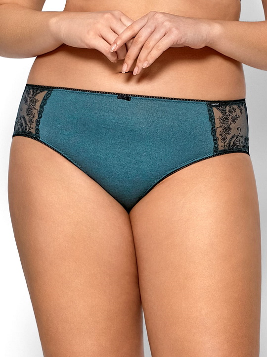 Трусики шорты Agnes из эластичной мягкой ткани, спереди по бокам вставки из сетки с вышивкой, сзади из чёрного трикотажа. Ластовица из 100% хлопка. Идеально сочетаются с бюстгальтерами Agnes.