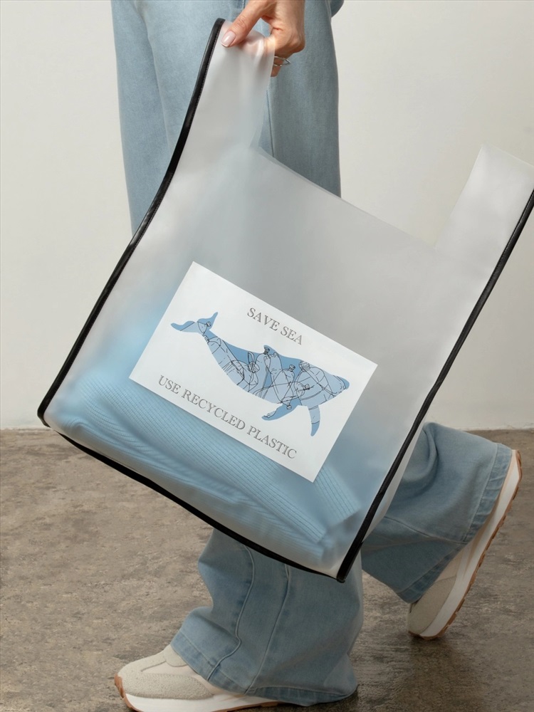 осень-зима 100% переработанный пластик Сумка-шоппер - незаменимая вещь для совершения покупок. Стильный аксессуар из прозрачного прочного переработанного пластика с эксклюзивным принтом будет отличным дополнением к вашему образу.