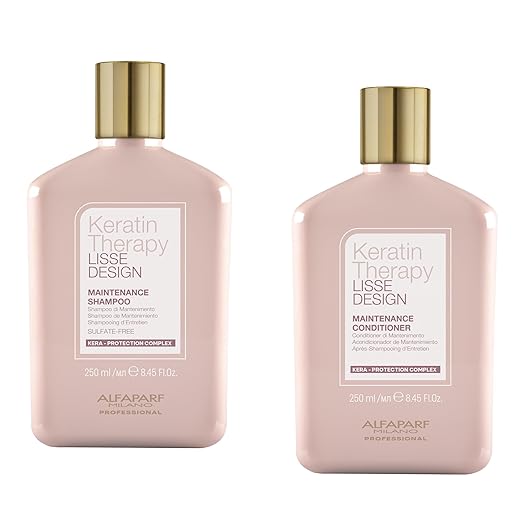 Alfaparf Milano Lisse Design Keratin Shampoo and Conditioner Set - Sulfate Free - Anti-Frizz - Maintains & Enhances Professional Keratin Therapy Treatment - Keeps Hair Smooth & Straight