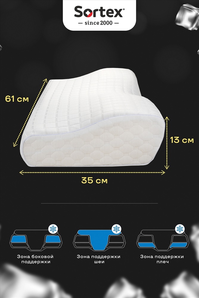 Состав: внешний чехол 100% ПЭ Модель: Анатомическая подушка с охлаждающим трикотажем Freshness ПА-61-35от Тип товара: подушка Материал: вязаный трикотаж | наполнитель вспененный | наполнитель memory | наполнитель memory | наполнитель вспененный | вязаный трикотаж Бренд: Ившвейстандарт Наполнитель: с эффектом памяти Назначение: для спальни Особенности: вязаные изделия Рисунок: однотонные Сезонность: лето | осень | весна | зима Ткань чехла: Внешний чехол: - верхняя сторона изделия - охлаждающий трикотаж; - боковая и нижняя сторона изделия - трикотаж. Внутренний чехол - 100% хлопок. Цвет: белый Наполнитель: Вязкоэластичный пенополиуретан с эффектом памяти Детали: белый кант чехол на молнии Размер: 61х35х13 Производитель: Ившвейстандарт Описание: Подушка Freshness 61х35х13 с охлаждающим эффектом - настоящее спасение от летней жары! Если вы постоянно переворачиваете подушку в поисках прохладной стороны - это решение для вас! Ортопедическая подушка с эффектом памяти в съемном чехле обеспечит вам по-настоящему комфортный сон. Ткань пропускает воздух, отводит и испаряет влагу, поддерживает оптимальную температуру на своей поверхности. Модель идеально повторяет очертания головы и аккуратно поддерживает шейный отдел позвоночника. Благодаря этому уменьшается боль в шее, улучшается кровоснабжение и общее самочувствие. Таблица размеров и веса