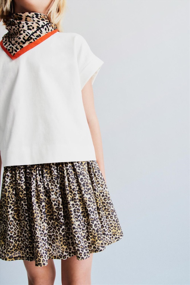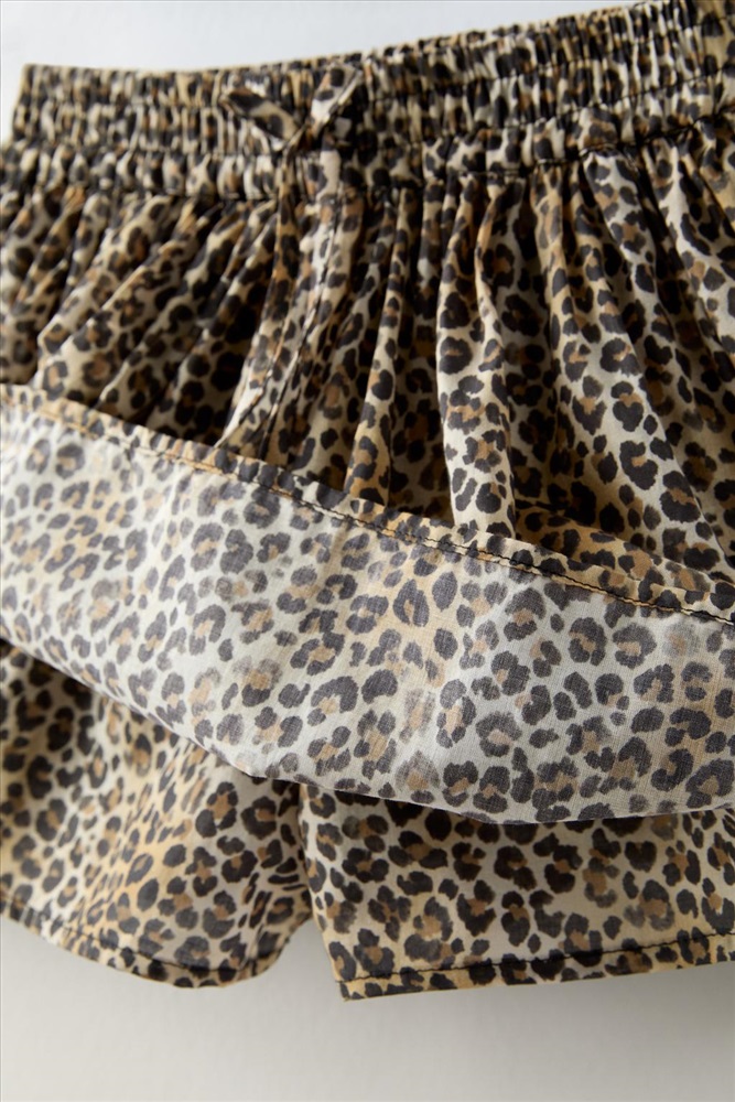 Bermuda skort with an elasticated waistband and front bow appliqué. Pleated details.