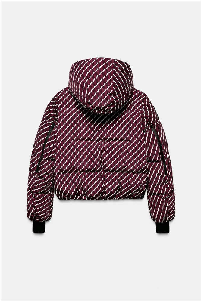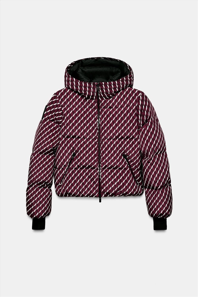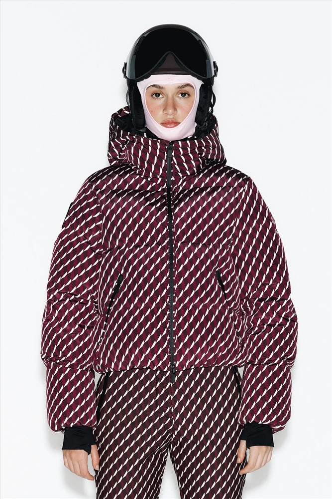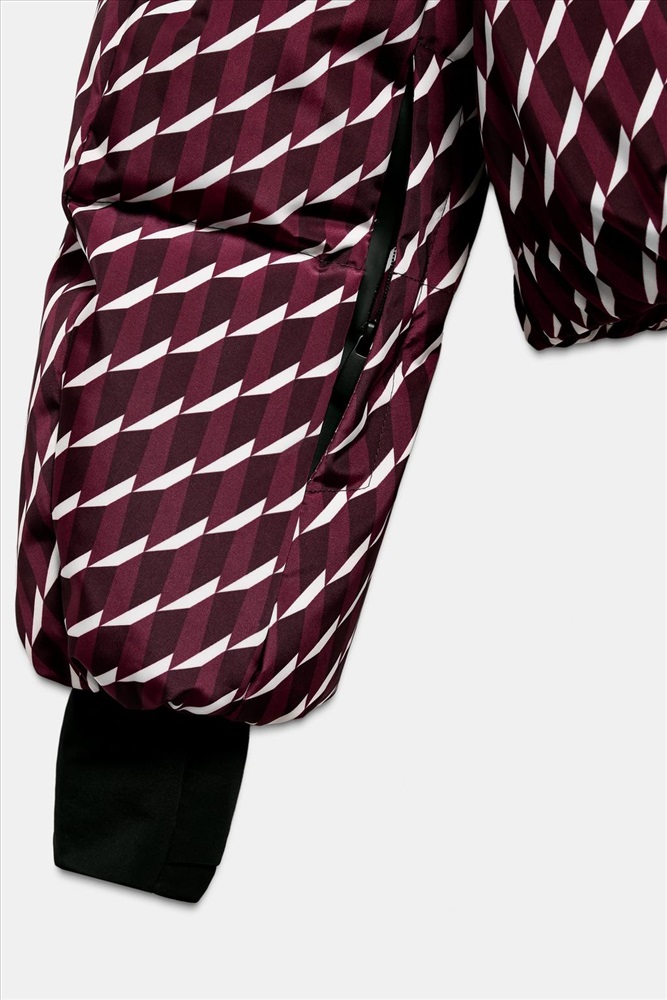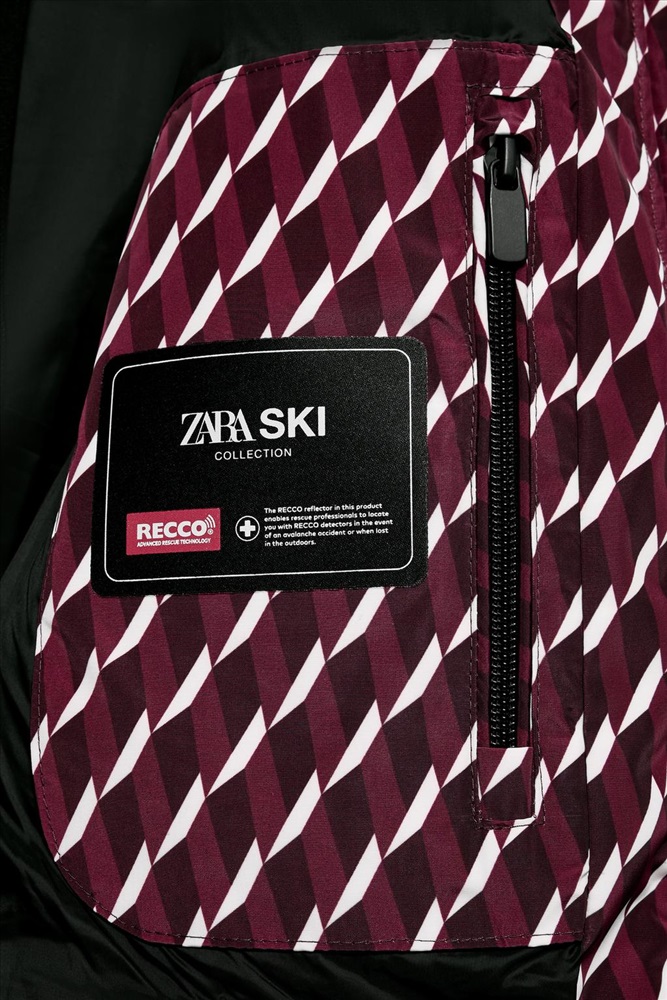 High collar with an adjustable hood with elastic drawstrings. Long sleeve with a ski pass pocket, finished with elastic and cuffs with a thumbhole. Front pockets with inner fleece lining and zip fastening. Inner mobile phone pocket and inner mesh pocket for gloves with glasses cleaner. Elastic hem with adjustable drawstrings. Detachable inner snow skirt with zip and adjustable hem to prevent cold air entry. Front fastening with a double-slider zip and an inner placket lined with polar fleece to protect the face.