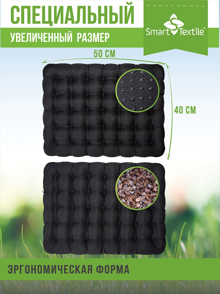 Состав: Чехол- смесовая ткань, напол.- лузга гречихи Модель: АВТО УЮТ МАХ подушка на сиденье. Разм.- 40х50 см. Тип товара: подушка для авто Материал: наполнитель лузга гречихи | грета | грета | наполнитель лузга гречихи Бренд: Smart Textile Рисунок: однотонные Сезонность: лето | осень | весна | зима Погрузитесь в комфорт и уют с подушкой для сидения Авто Уют Мах, идеальным решением для вашего автомобиля. Эта подушка сочетает в себе высококачественные материалы и инновационный дизайн, обеспечивая максимальное удобство во время длительных поездок. Особенности: - Размер: 40х50 см идеально подходит для большинства автомобильных сидений. - Антискользящая ткань: Специальное силиконовое покрытие обеспечивает надежное сцепление с сиденьем, предотвращая скольжение во время движения. - Наполнитель из лузги гречихи: Натуральный наполнитель обеспечивает отличную вентиляцию и поддерживает анатомическую форму, снижая давление на проблемные зоны тела. - Прочный и долговечный: Высококачественные материалы гарантируют долгий срок службы и сохранение формы подушки. Подходит для: - Длительных поездок на автомобиле. - Улучшения посадки и комфорта во время вождения. - Поддержки правильной осанки и снижения утомляемости. Подушка Авто Уют Мах ваш надежный спутник на дороге, обеспечивающий максимальный комфорт и поддержку в любых условиях. Длительное нахождение за рулем негативно сказывается на здоровье водителя, а вибрации, передаваемые автомобилем, только усиливают эти проблемы. Многие автолюбители страдают от болей в спине. Специальная анатомическая подушка для автомобильных сидений Авто Уют Мах от Smart Textile помогает справиться с этой проблемой. Подушка имеет прочный чехол из смесовой ткани, который защищает кресло от повреждений и загрязнений. Благодаря точечному силиконовому нанесению подушка надежно удерживается на поверхности (в том числе и кожаной) и не нуждается в дополнительной фиксации. Основным преимуществом подушки является использование в качестве наполнителя лепестков лузги гречихи. Этот материал обладает уникальными свойствами, позволяющими подушке идеально подстраиваться под анатомические особенности каждого человека. Лузга гречихи обеспечивает хорошую вентиляцию и не нагревается даже при длительном использовании, что делает подушку комфортной в жаркую погоду. Подушка также выполняет антирезонансные функции, снижая вибрации, передаваемые от автомобиля к водителю. Благодаря наличию молнии, жесткость подушки можно регулировать, убирая или добавляя часть наполнителя. Эта инновационная подушка от Smart Textile создает удобство и комфорт во время вождения, снижает нагрузку на спину и предотвращает болевые ощущения. Разработанная с учетом потребностей автолюбителей, она становится незаменимым аксессуаром для всех, кто проводит много времени за рулем. Таблица размеров и веса