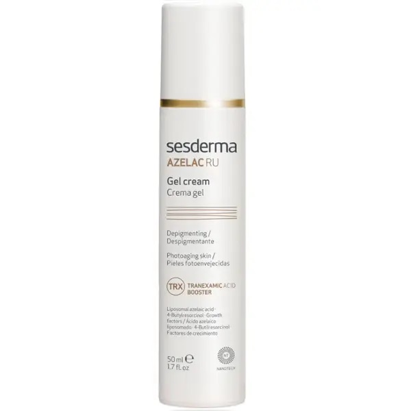 Tipo de producto: Crema Sesderma Azelac Ru Crema Gel Despigmentante 50 ml ¿Quieres lucir una piel sin manchas, con un tono uniforme y más luminosa? Con el nuevo Azelac Ru en textura gel-crema lucirás un rostro sin manchas.