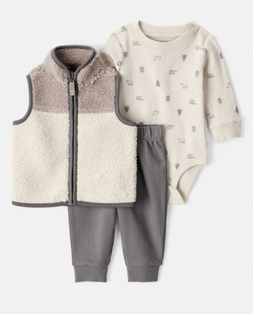 Baby Boy 3-Piece Vest, Bodysuit & Pant Set - Ivory/Grey