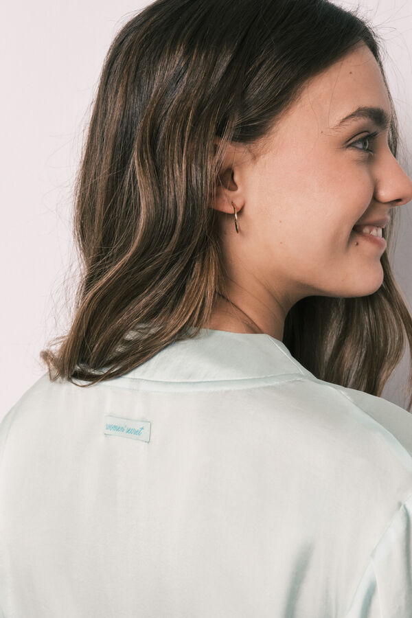 Bata midi de manga larga, lisa, confeccionada en tejido de satén, estilo cruzada, con cinturón para un mayor y mejor ajuste. Combínala con un pijama o camisón para estar en casa cómoda y con estilo.