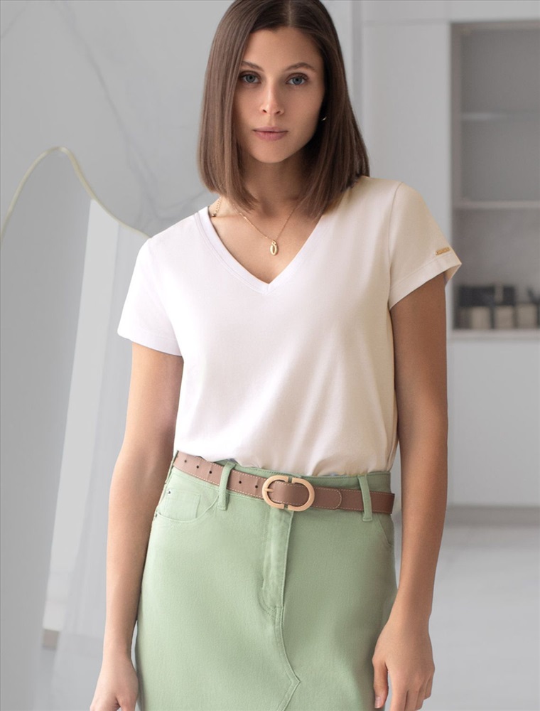 Плотность: 170 Г/м2 Базовая футболка молочного цвета с V-образным вырезом выполнена из премиального хлопка. Добавление эластана в состав изделия способствует формоустойчивости. Футболка выполнена из качественного натурального материала, отлично сидит по фигуре и подходит для отдыха и работы. Преимущество этой модели - V-образный вырез, который подчеркивает линию шеи и придает внешнему виду элегантность. Такой фасон гармонично вписывается как в классические, так и в современные гардеробы. Декольте делает изделие более женственным и визуально вытягивает силуэт, создавая ощущение легкости. Такая футболка средней длины и классического кроя идеально подойдет под любую одежду. Модель доступна в больших размерах, чтобы каждая женщина могла подчеркнуть свою индивидуальность. Комментарии к товару