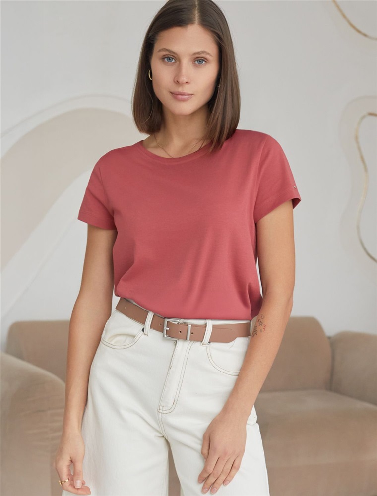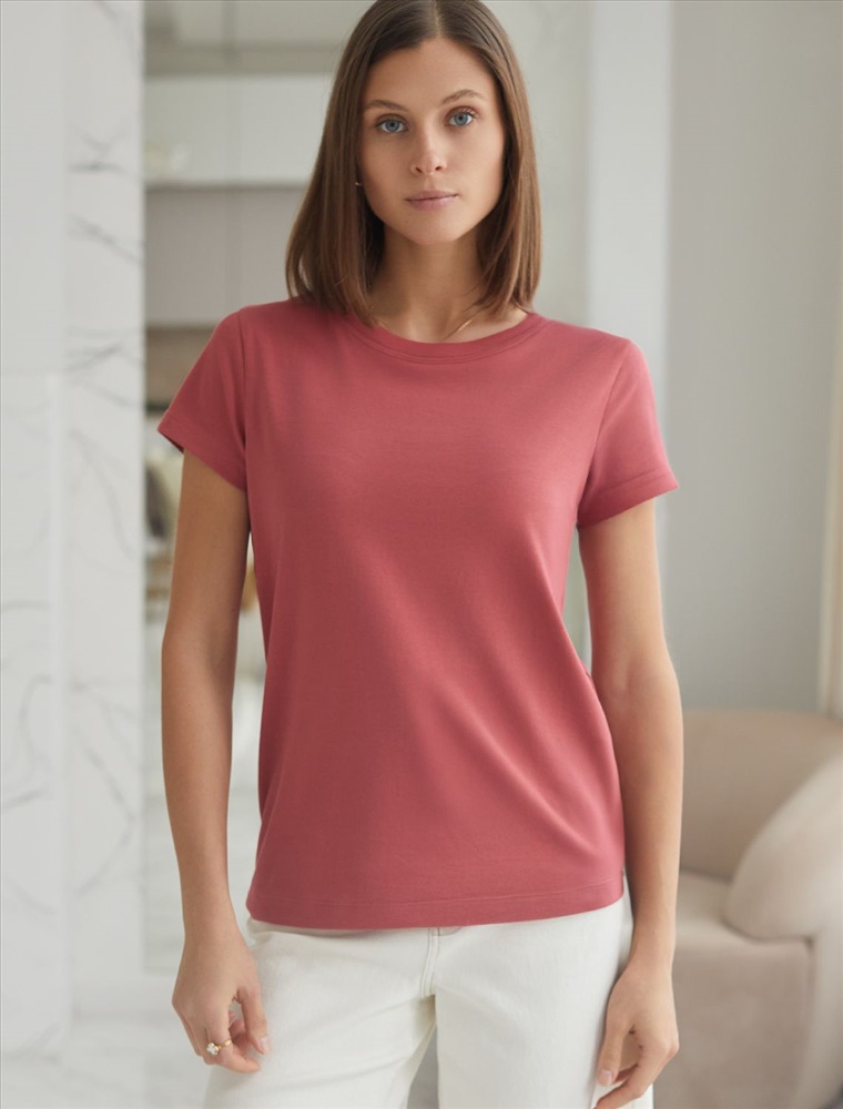 Плотность: 170 Г/м2 Стильная и модная женская футболка темно-кораллового цвета станет отличным дополнением к вашему гардеробу. Футболка плотностью 170 Г/м2 изготовлена из премиального хлопка с добавлением эластана. Добавление эластана в состав изделия способствует формоустойчивости. Эта классическая футболка подходит для создания кэжуал образа на каждый день и идеально подойдет для работы. Модель не мнется, что делает ее практичным вариантом для активных женщин, которые ценят стиль и удобство. Благодаря однотонной расцветке эта футболка легко комбинируется с различными элементами гардероба. Она станет универсальным решением для тех, кто предпочитает комфортный стиль casual. Повседневная футболка подчеркнет вашу индивидуальность и позволит вам выглядеть привлекательно в любой ситуации. Легкость в уходе и высокая износостойкость делают ее незаменимой вещью в вашем гардеробе. Одевайте эту модель как на работу, так и на встречу с друзьями — она всегда будет уместна! Стильная и практичная модель с простым кроем и лаконичным дизайном - идеальный вариант для тех, кто ценит качество, минимализм и классический стиль в одежде. Комментарии к товару