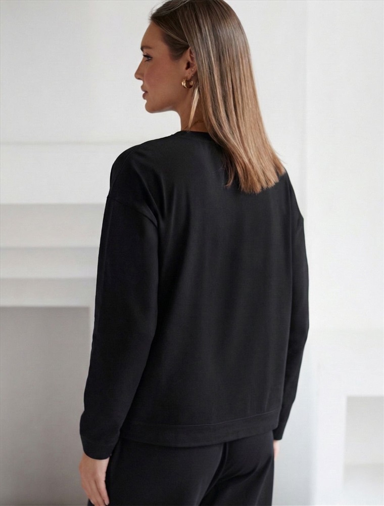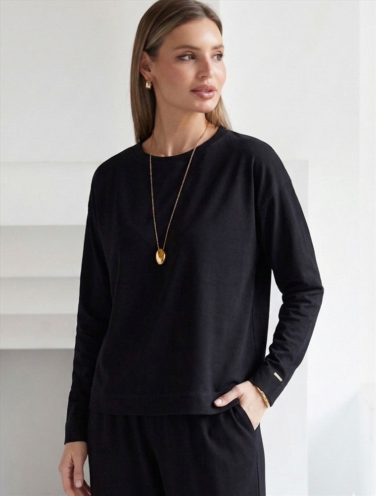 Свободный лонгслив черного цвета с длинным рукавом выполнен из премиального хлопка с добавлением эластана, что обеспечивает комфорт и приятные тактильные ощущения. Однотонная расцветка и круглый ворот создают стильный и универсальный образ, который подойдет для повседневного использования. Спущенная линия плеча придает лонгу современный и расслабленный силуэт. Такой лонгслив идеально подходит для весеннего и летнего сезона благодаря легкой и дышащей ткани. Большие размеры позволяют выбрать оптимальный вариант на любую фигуру, обеспечивая свободу движений и удобство на каждый день. Этот комфортный лонгслив станет отличной базой в гардеробе, сочетаясь с различными стилями одежды и создавая простой, но эффектный образ.