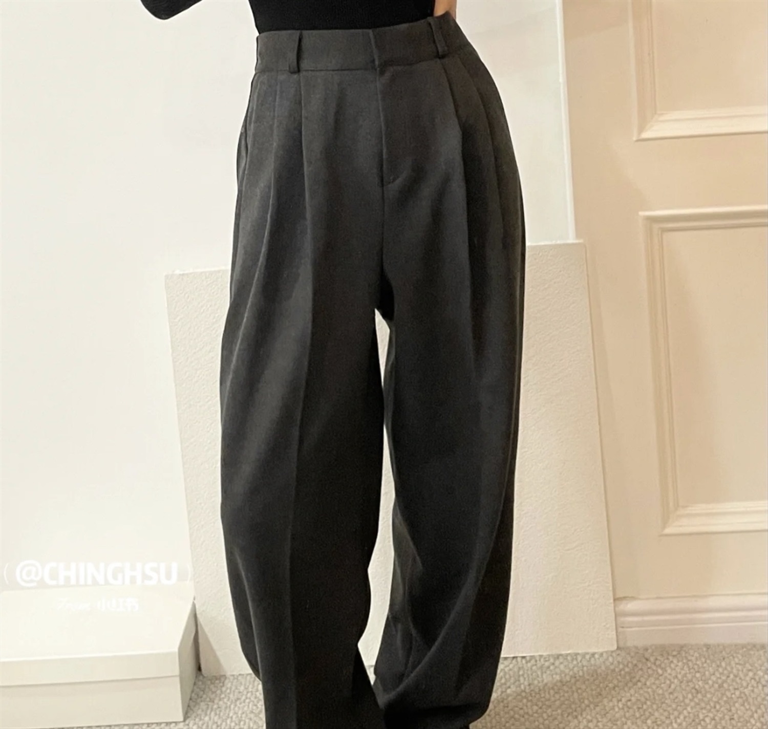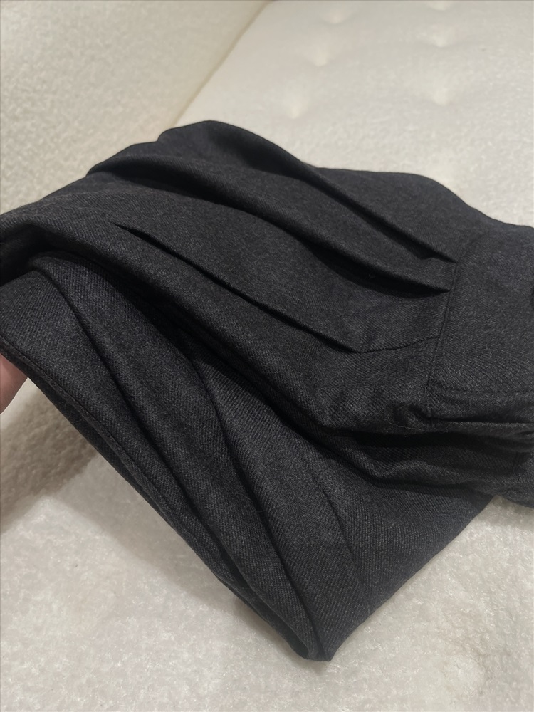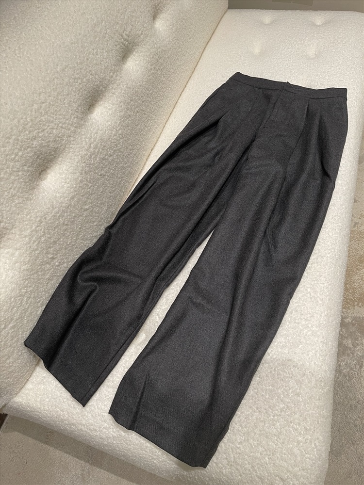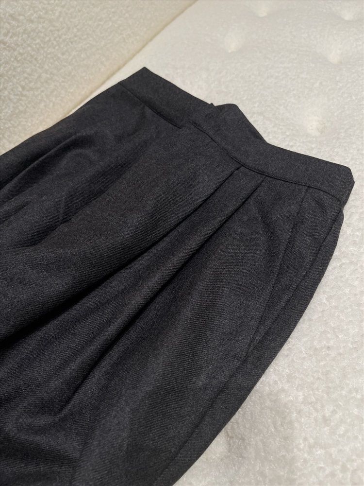 BC Итальянские серые импортные шерстяные повседневные брюки с эластичной резинкой на талии Очень свободные брюки с эластичной талией. Эксклюзивно изготовленная по индивидуальному заказу импортная ткань из 100% камвольной шерсти, которая имеет нежную и мягкую текстуру и особенно хорошо драпируется. Планка оснащена застежкой-молнией YKK, высококачественной серой, слегка зауженной формой брюк, дизайном с двойными складками, слегка воздушными плавными линиями, изменяющими форму ног.
