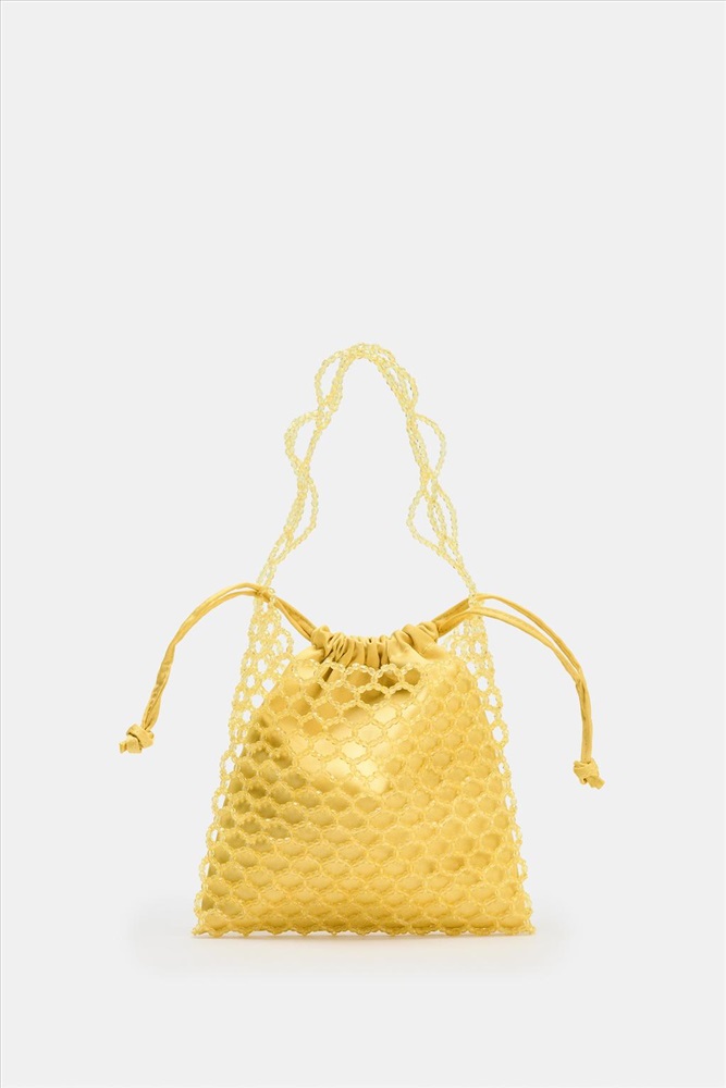Mini bucket bag with bead detail on the top. Shoulder strap and chain crossbody strap. Inner pouch with gathered drawstring closure. COMPOSITION, CARE & ORIGIN COMPOSITION OUTER SHELL SECONDARY FABRIC 100% polyester MAIN MATERIAL 100% polymethyl methacrylate SHOULDER STRAP 100% copper LINING 100% polyester CARE Caring for your garments to extend their useful life. Simple steps like cleaning your items with a dry cotton cloth or a soft brush, depending on the characteristics of the product, can help you care for it.