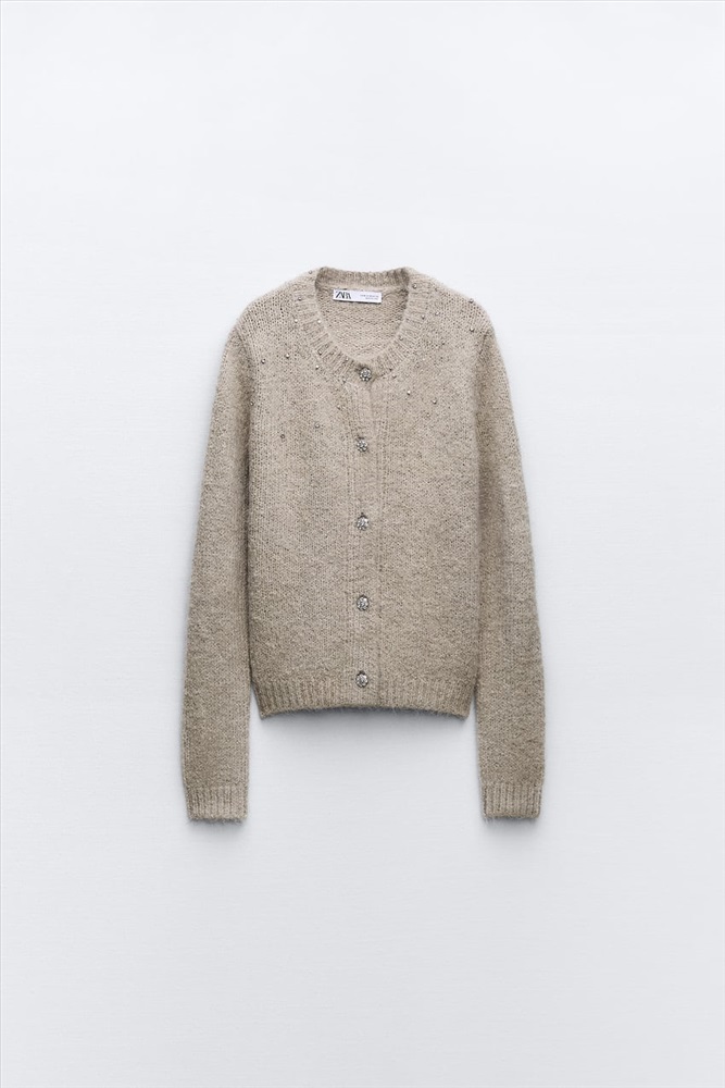 BEADED RHINESTONE KNIT CARDIGAN