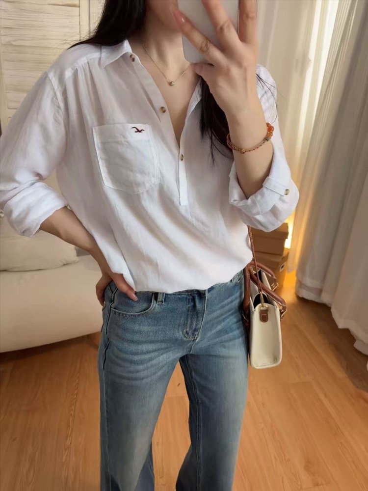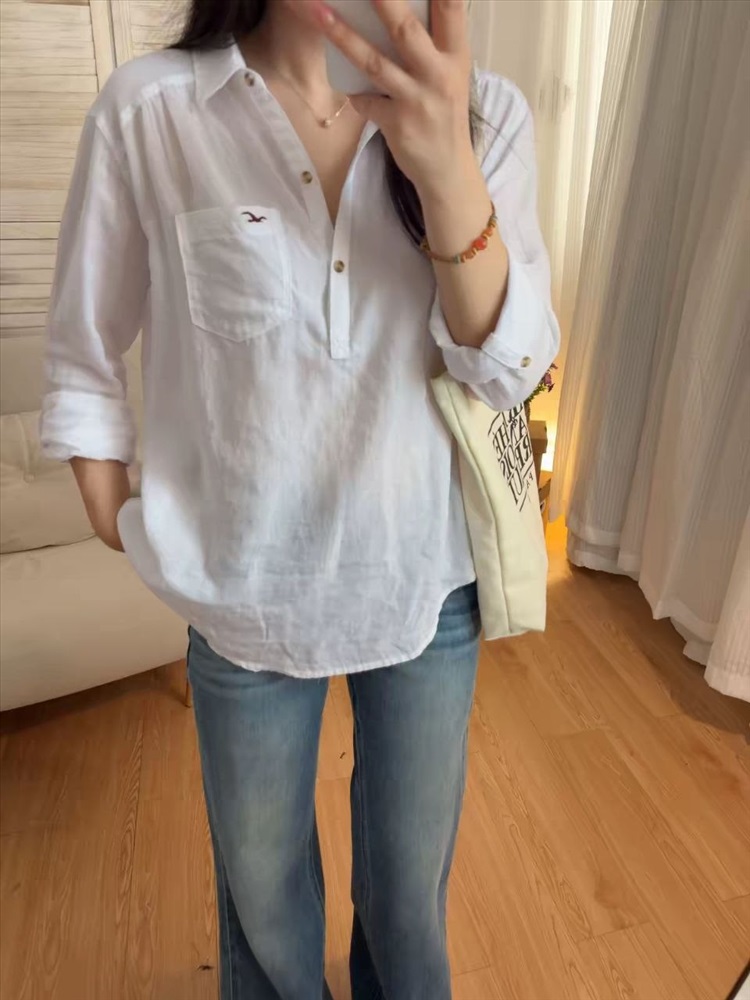 Белая хлопковая рубашка поло на пуговицах
