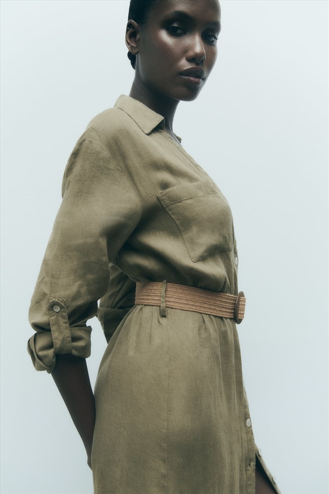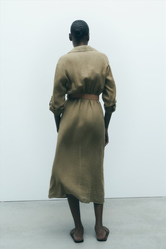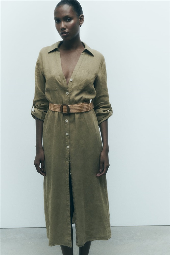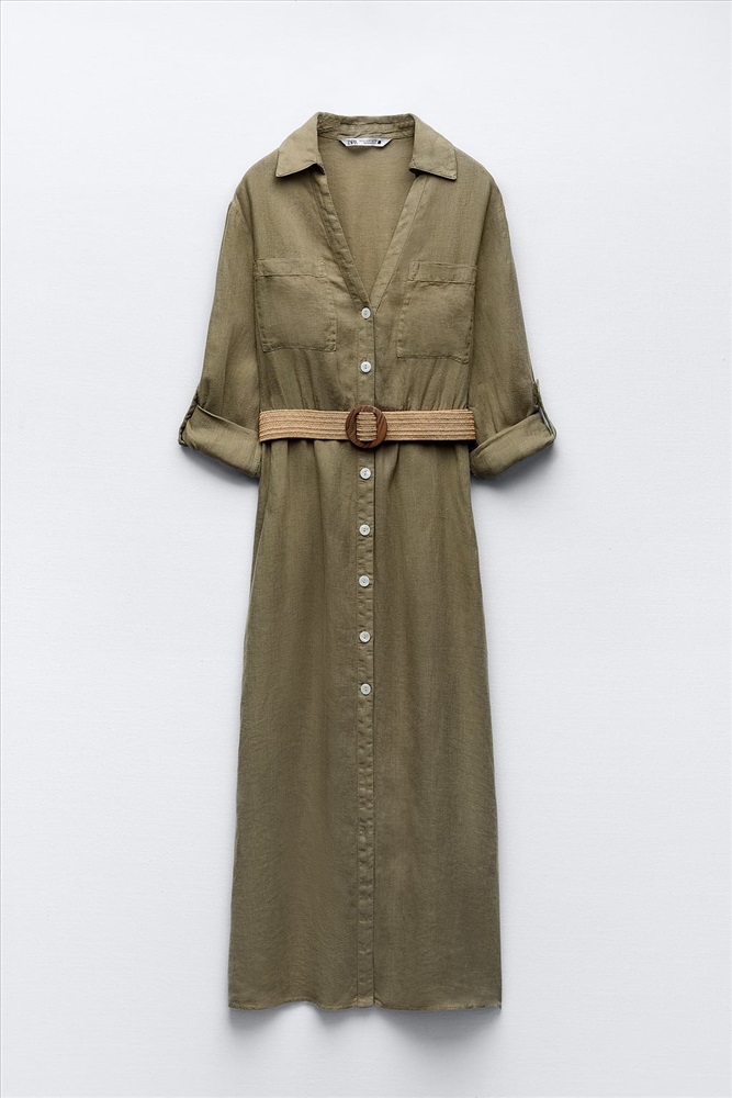 BELTED LINEN SHIRT DRESS