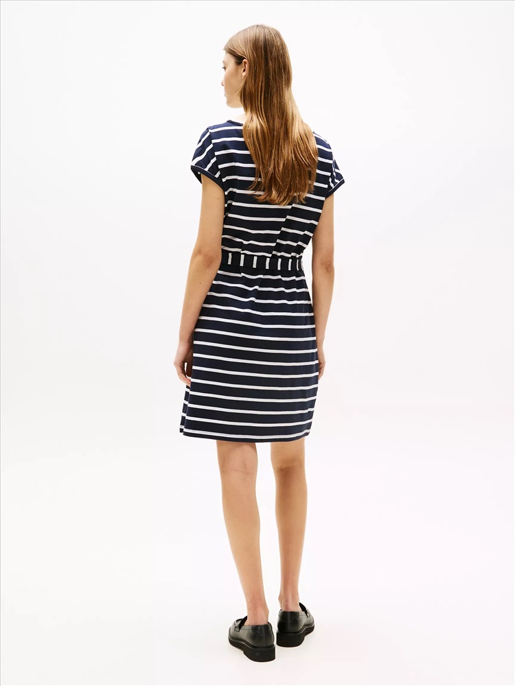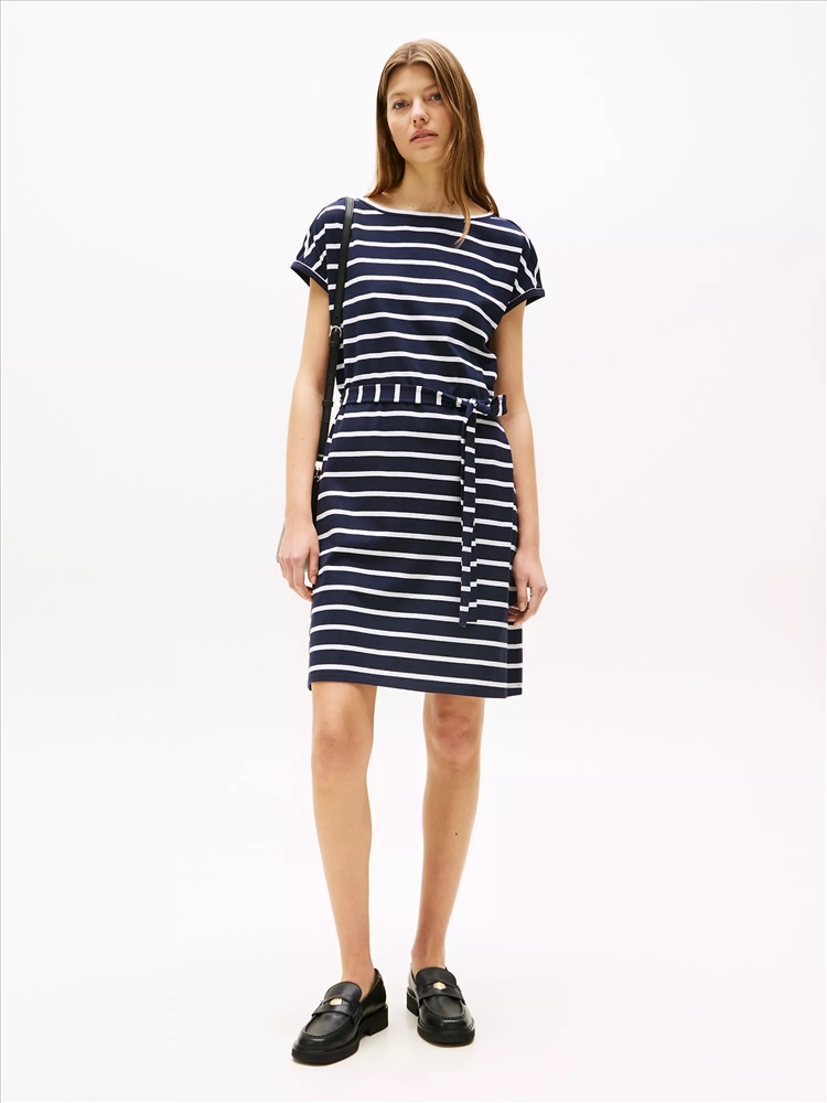 Belted Stripe Stretch T-Shirt Dress