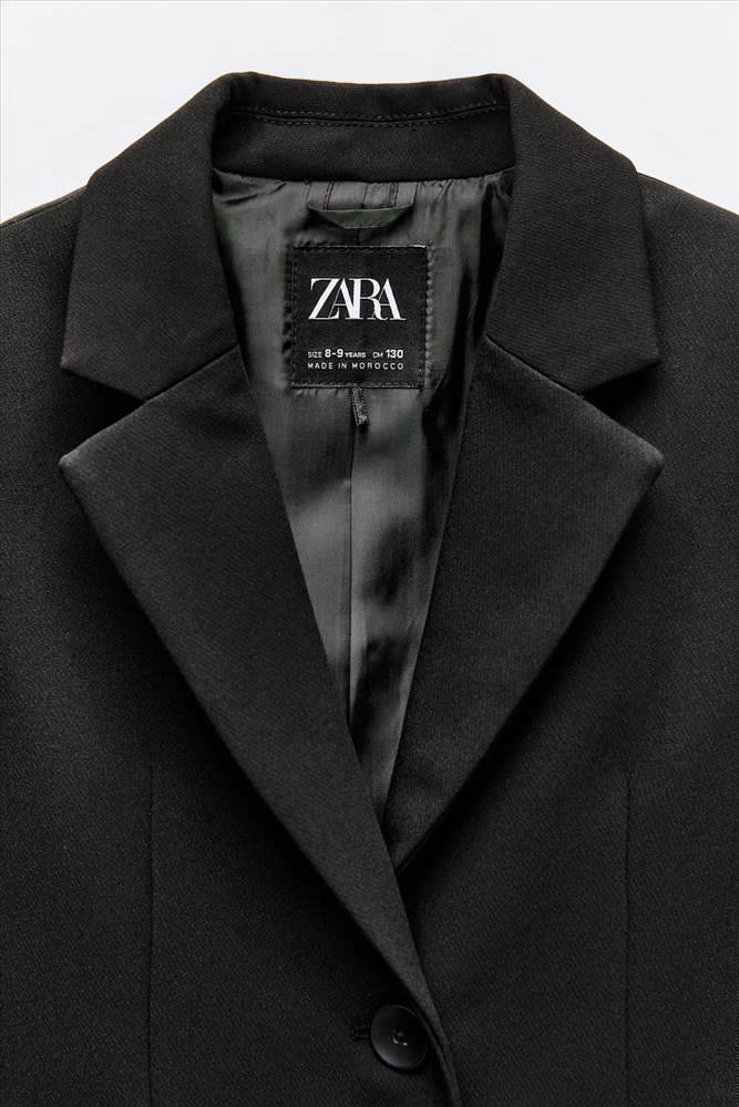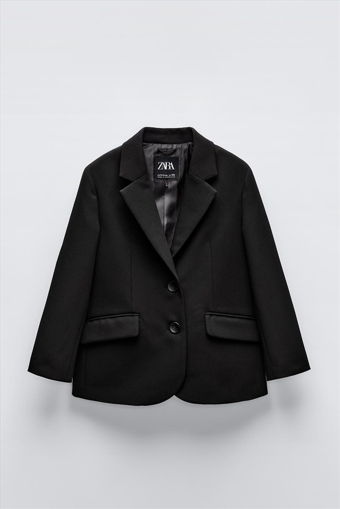 Long sleeve blazer with a lapel collar. Front button fastening. Front flap pockets.