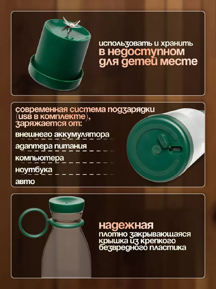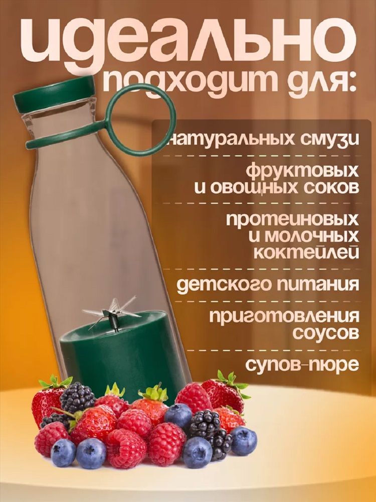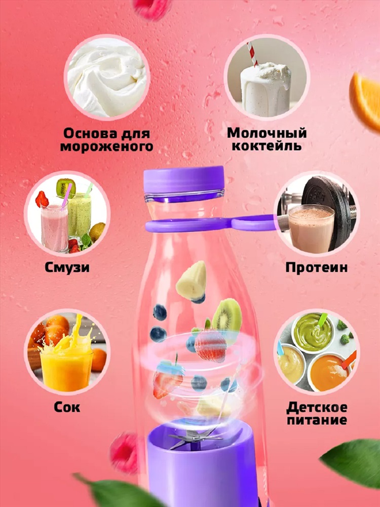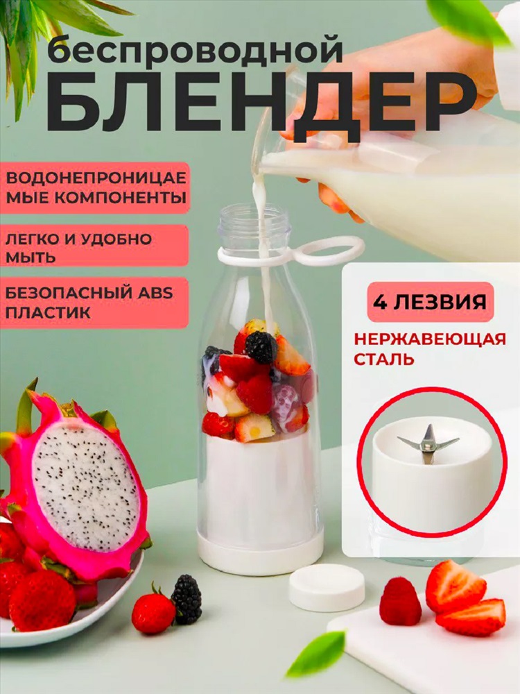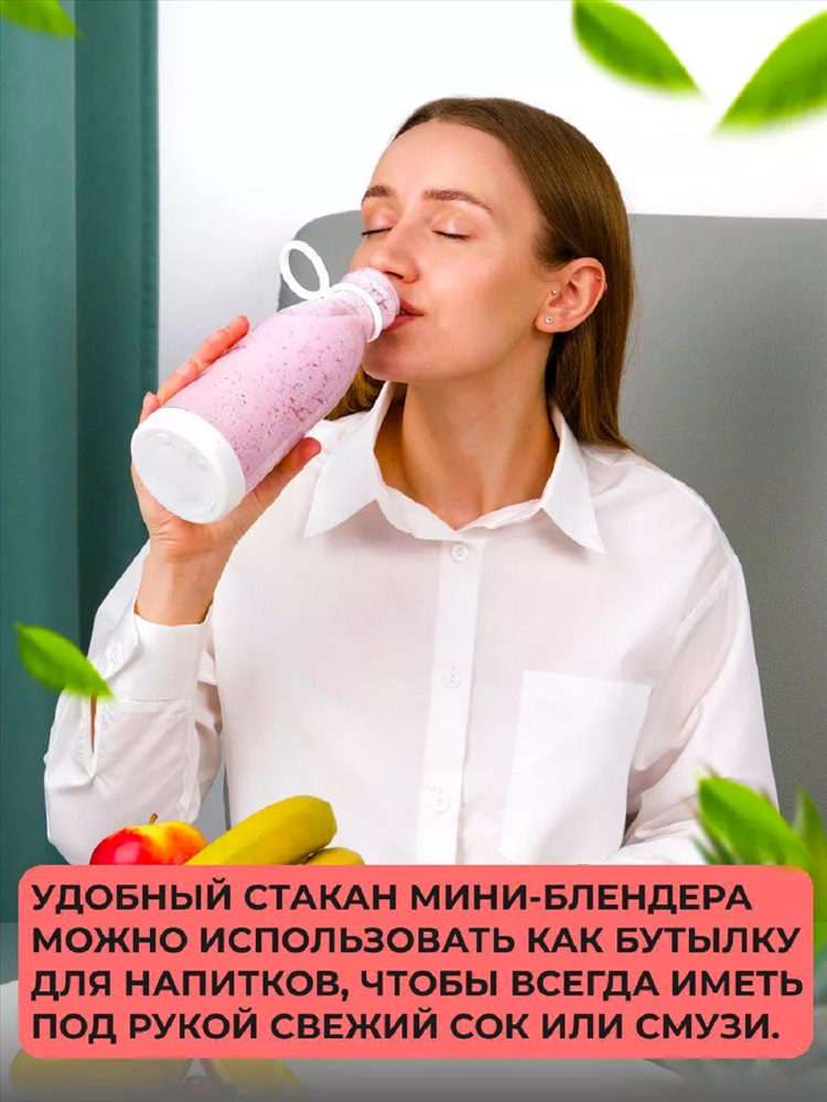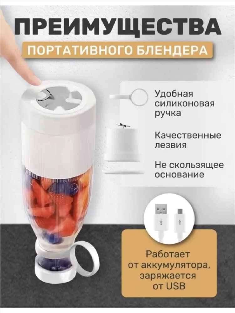 Назначение: для дачи Хотите наслаждаться свежими и полезными смузи в любое время и в любом месте? Тогда беспроводной блендер именно то, что вам необходимо! Этот компактный и стильный бутылка блендер имеет размер всего 21 * 7,5 см, что делает его идеальным компаньоном в путешествиях или на работе. Своей емкостью в 420 мл товар позволяет комфортно наслаждаться вкусными смузи в любое время. А благодаря функции зарядки через USB, вы сможете зарядить ручной шейкер для коктейлей где угодно - в автомобиле, компьютере, с помощью портативного аккумулятора и даже в обычной розетке. Всего 4 часа - и ваш компактный блендер готов к использованию. Этот карманный измельчитель идеально подходит для быстрого и удобного приготовления смузи.