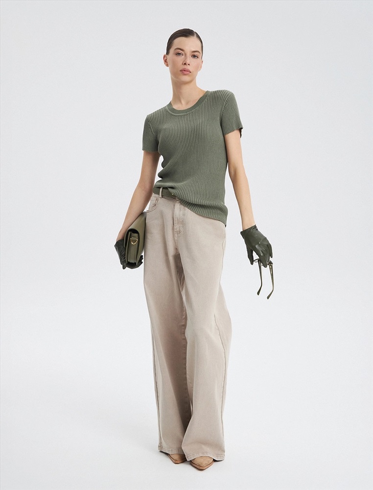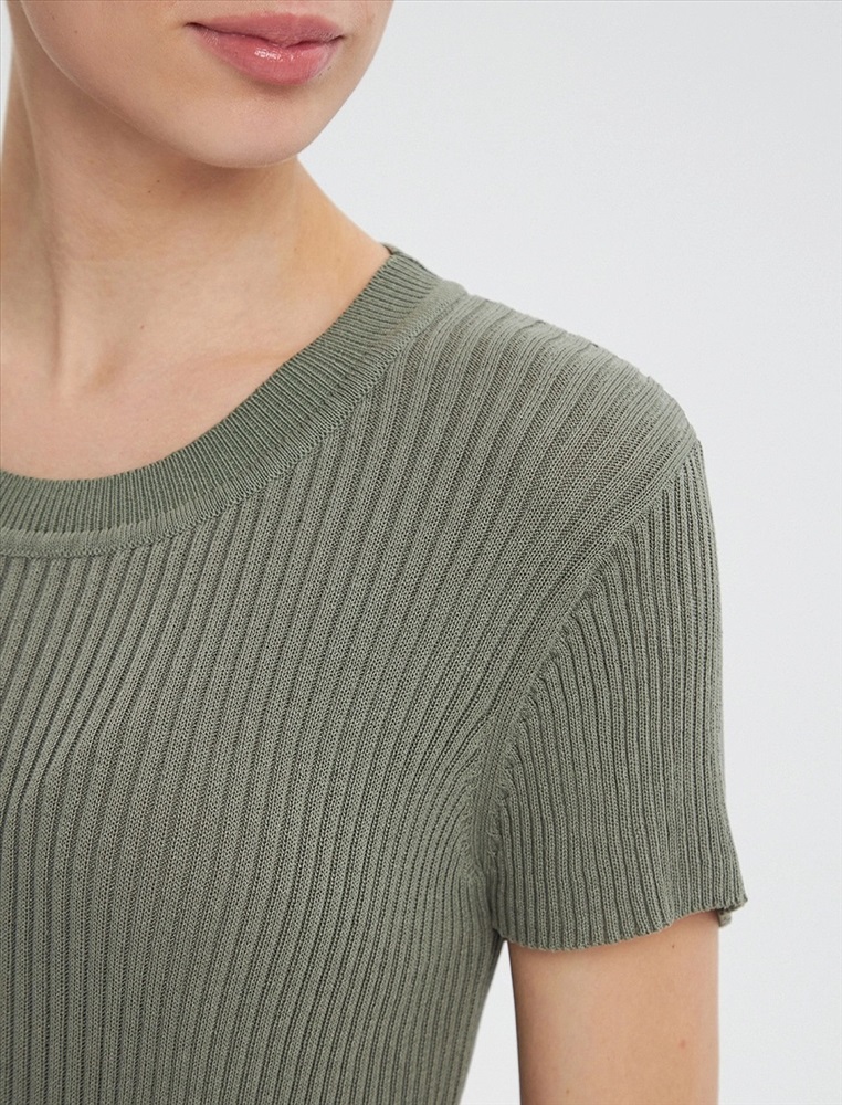 Видео: https-//hassfashion.ru/upload/iblock/af2/n9x6papv9p3smynkfj3z3ba13ozriwk2.mp4 весна-лето 60% Хлопок, 40% Лен Трикотажная блуза прямого силуэта с коротким рукавом. Спереди R-neck горловина, обра-ботанная рибаной.
