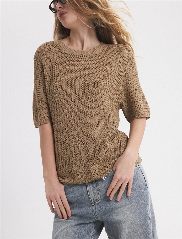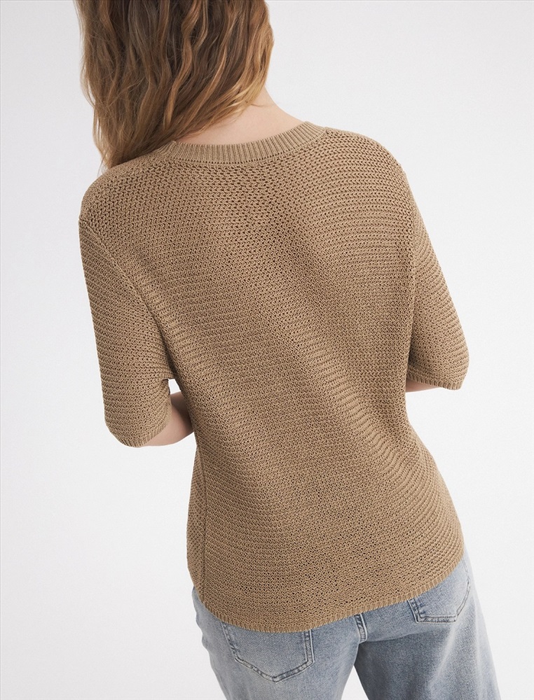 Видео: https-//hassfashion.ru/upload/iblock/340/zprgvd0fp8c0o48qty33a152n1vw17cd.mp4 весна-лето 60% Хлопок, 40% Лен Блуза регулярного силуэта со спущенным плечом и рукавом до уровня локтя. Выполнена из вязаного трикотажа. Комментарии к товару