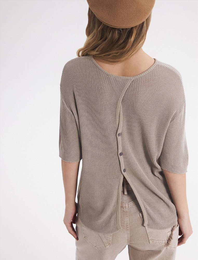 Видео: https-//hassfashion.ru/upload/iblock/f9d/ul6sshekvvy0kq0zpkmq1jn10vamz5pu.mp4 весна-лето 60% Хлопок, 40% Лен Блуза регулярного силуэта со спущенной линией плеча и рукавом длиной до уровня локтя. По спинке изделия декоративный запах с застежкой на пуговицы.