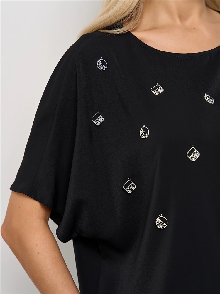 По переду изделия нашиты металлические элементы.