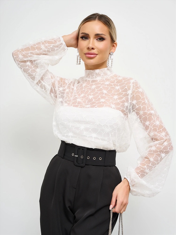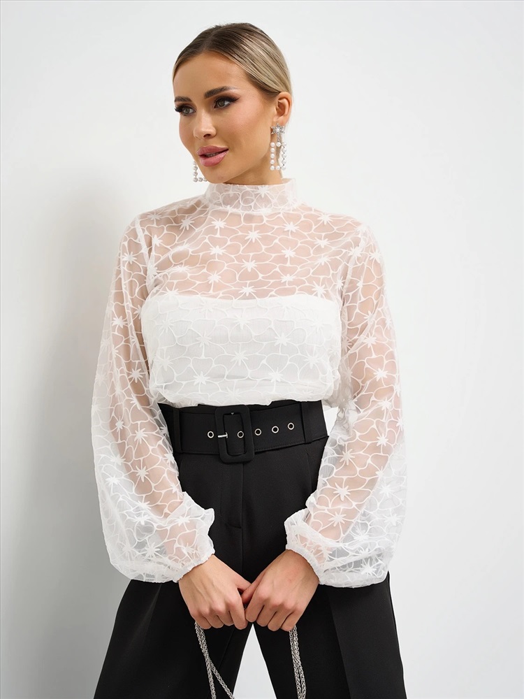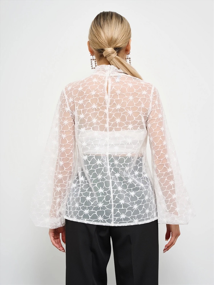 Блузка свободного силуэта из сетки с бархатным напылением.