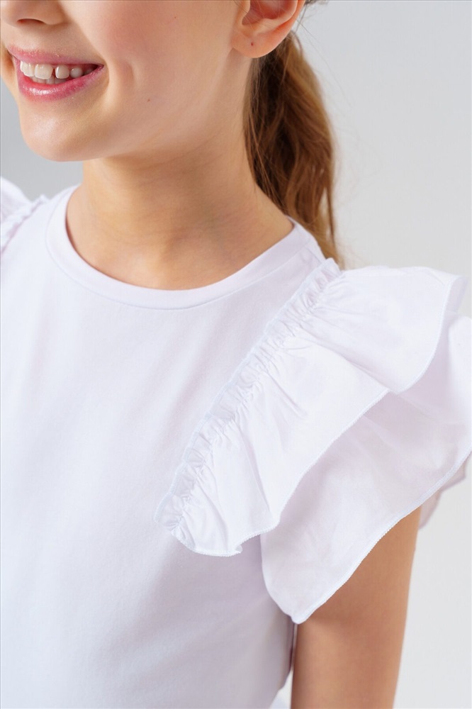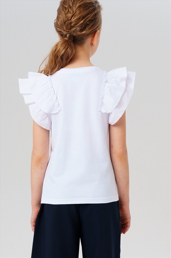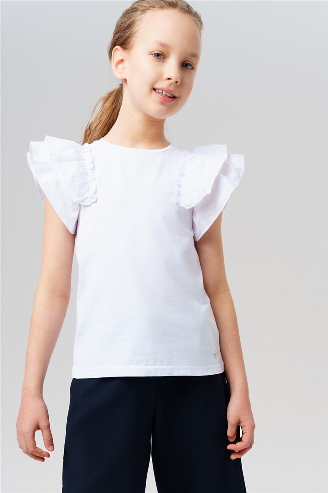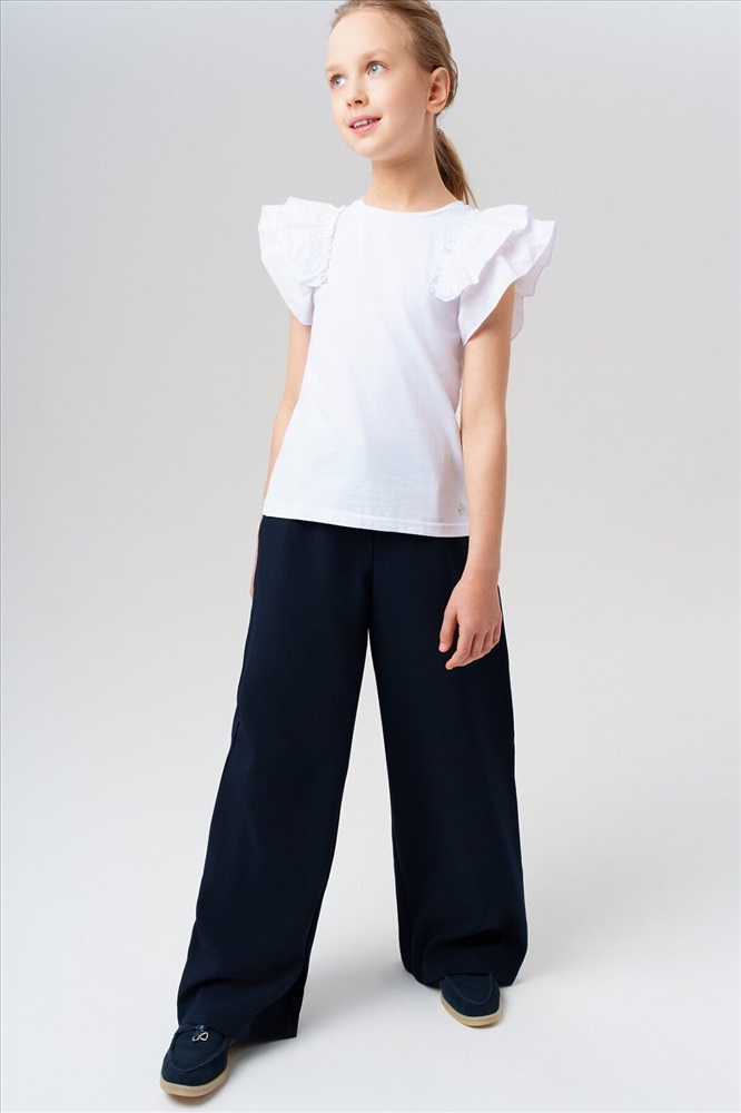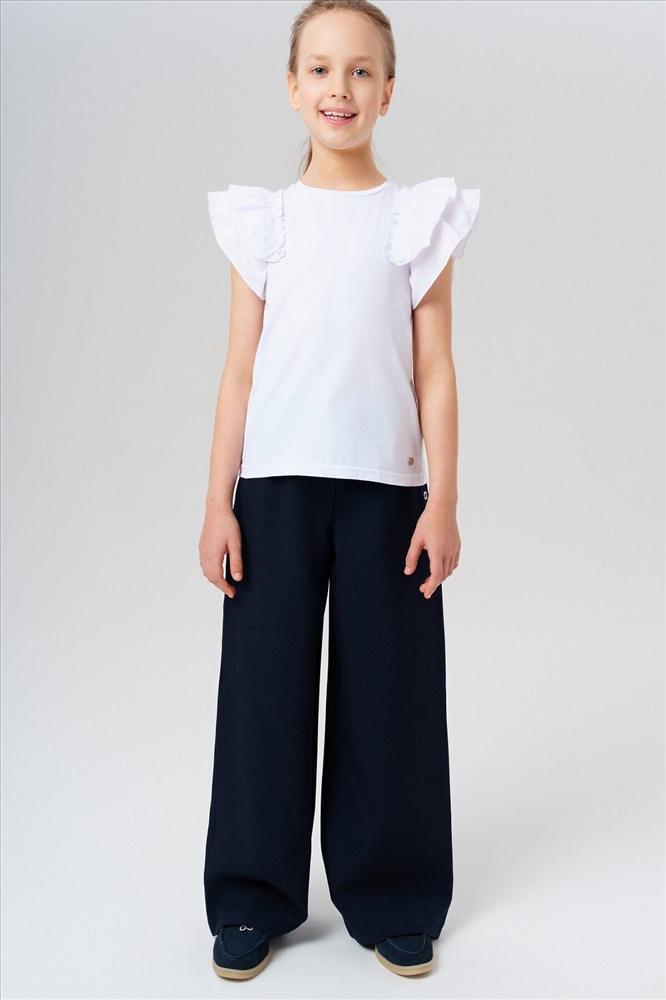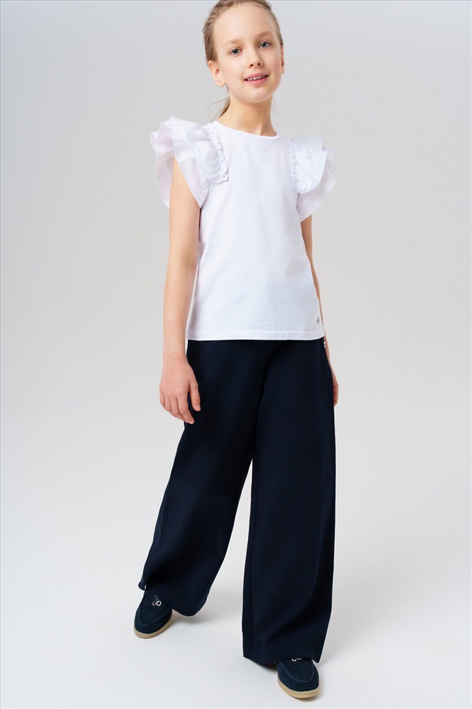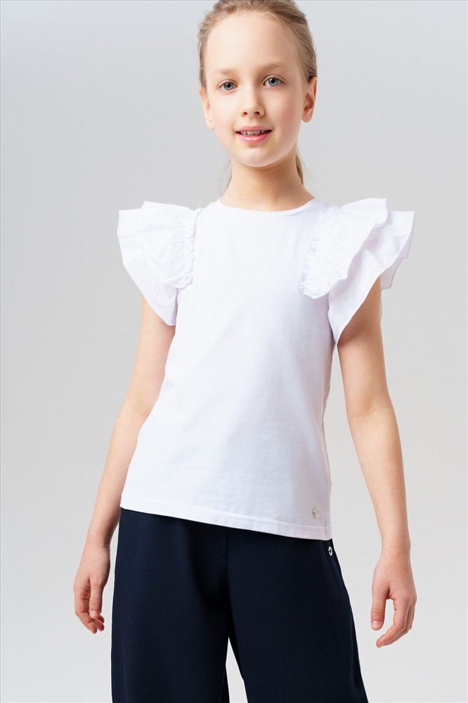 ID товара: 1126492 Акции: -5%, до 26.10.2025 Сезон: Весна/Лето Длина: Средняя Фасон: Прямой Рукав: Волан Вырез горловины: Округлый Стиль: классический Страна бренда: Германия Страна производства: Китай Белая нарядная блузка с коротким рукавом для школы Идеальный вариант на 1 сентября и для повседневной носки! Эта трикотажная блузка сочетает нарядный дизайн и комфорт для учебы. Ключевые особенности: + Романтичные воланы по переду – создают праздничный образ + Посадка regular – не сковывает движения во время занятий Почему стоит выбрать: Подходит как нарядный вариант на 1 сентября, так и для повседневной носки Удобный крой для девочки-школьницы и подростка. Комментарии к товару