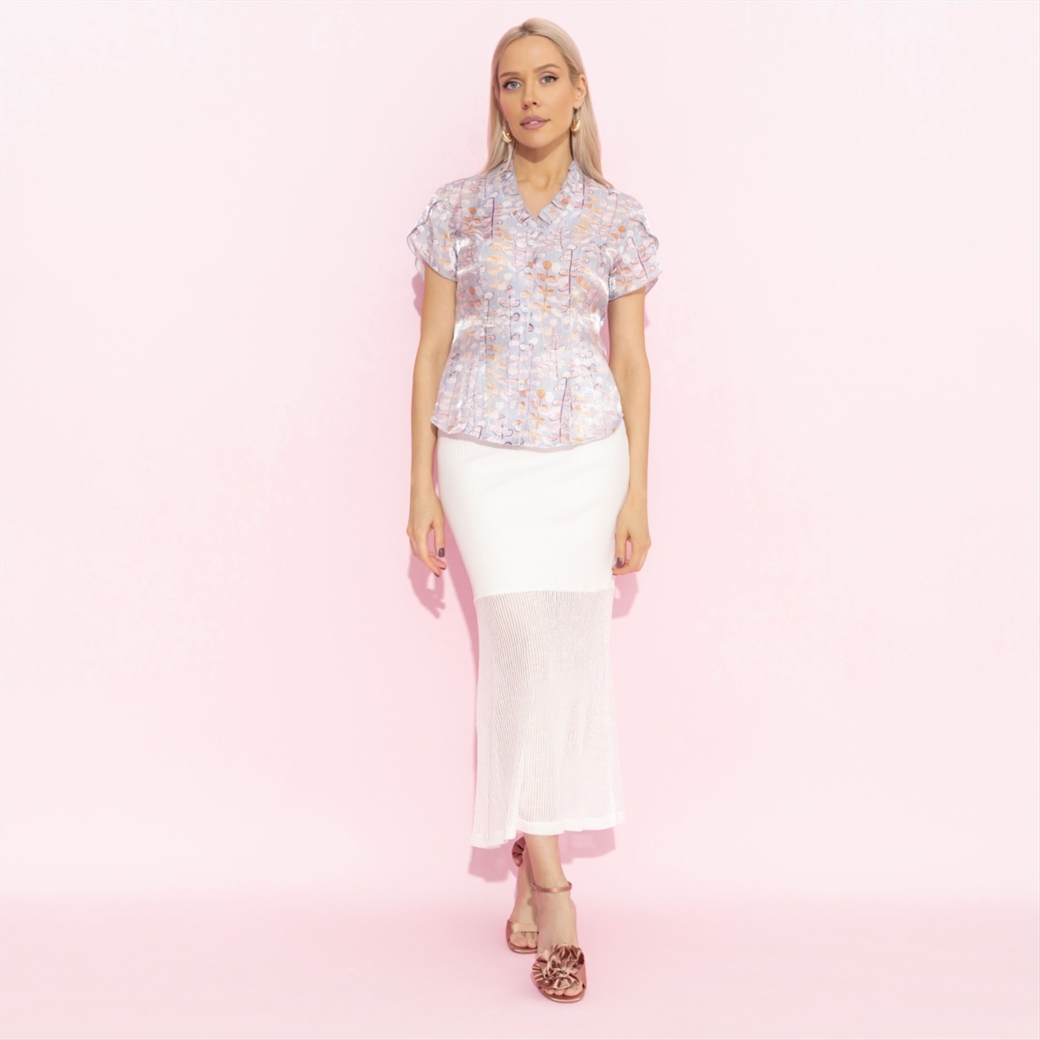 Блуза приталенного силуэта, Лёгкий шик, тяжёлый эффект (голубая)