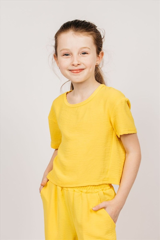 ID товара: 982030 Состав: 92% Полиэстер, 8% Эластан Сезон: Весна/Лето Длина: Средняя Фасон: Прямой Рукав: короткие Вырез горловины: Округлый Основная ткань: Полиэстер Стиль: повседневный Вид ткани: Сингапур Страна бренда: Россия Страна производства: Россия Блузка укороченная для девочки выполнена из качественной ткани Сингапур, свободный прямой крой. Блузка сочетает в себе простоту и элегантность, подходит как для повседневной носки, так и для создания праздничного образа. Ткань приятна на ощупь, легкая и прочная. Отлично сочетается в шортами арт. 0210, брюками арт. 0110. Блузка проста в уходе, не склонна к заломам. Материал износоустойчив, не линяет, ткань сохнет достаточно быстро, не требует утюжки - лёгкие и невесомые, не будут стеснять движения. Уход за изделием: бережная стирка до 30 градусов; нельзя отбеливать; деликатный отжим; гладить с изнанки. Возможна усадка. Комментарии к товару