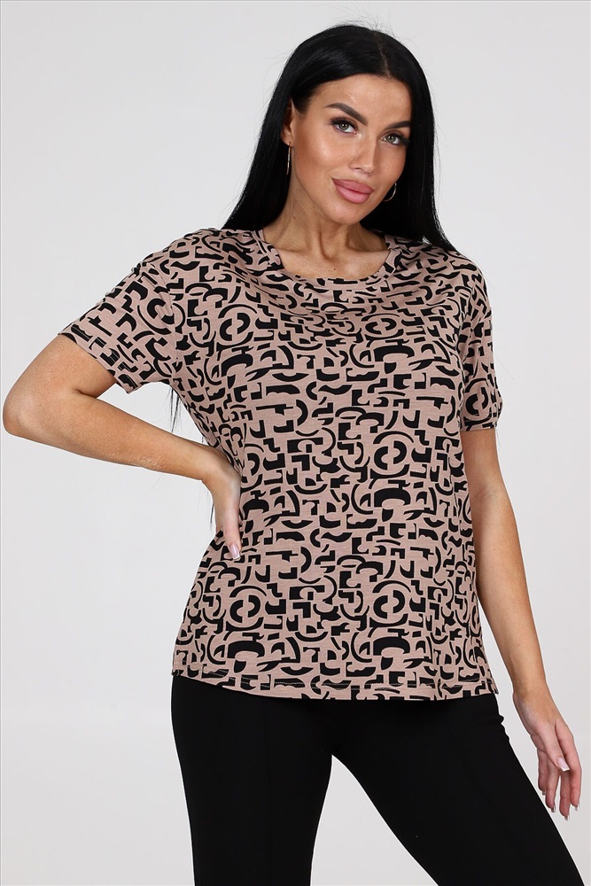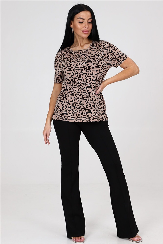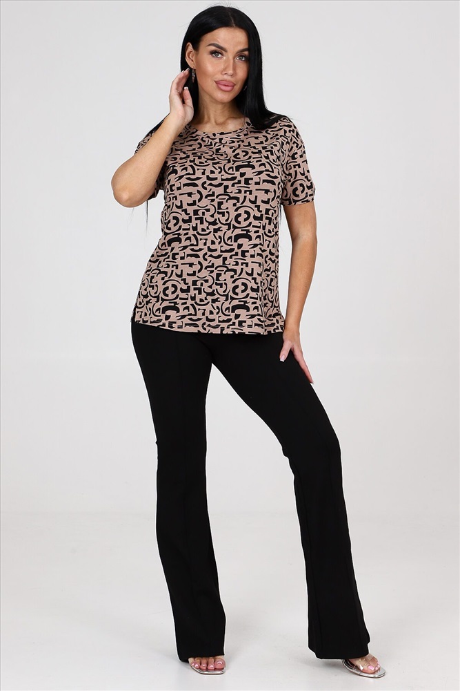 ID товара: 981780 Состав: Вискоза 95%, Лайкра 5% Сезон: Весна/Лето Фасон: Полуприлегающий Рукав: Короткий Вырез горловины: Круглый Рисунок: Фантазийный Вид ткани: Вискоза Страна бренда: Россия Страна производства: Россия Блуза женская из вискозы свободного покроя. Блуза со спущенным плечом и втачным рукавом. По боковым швам расположены разрезы. Комментарии к товару
