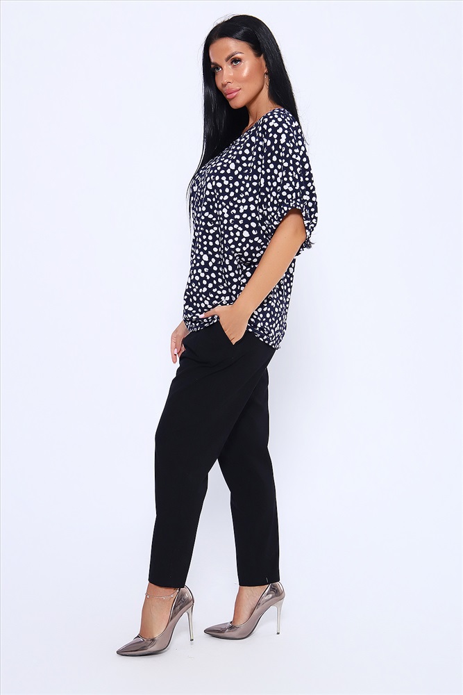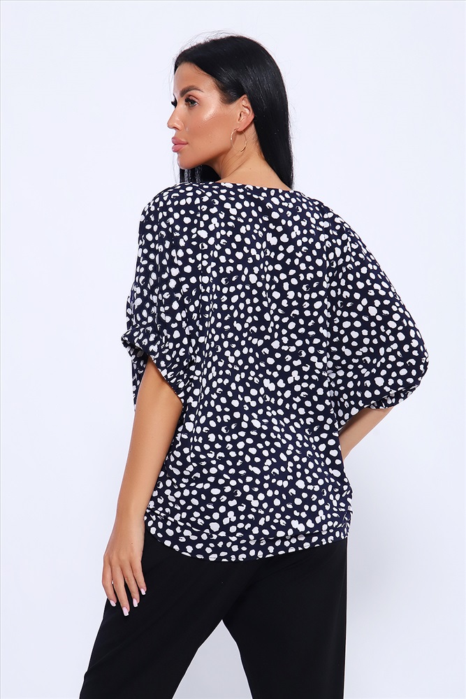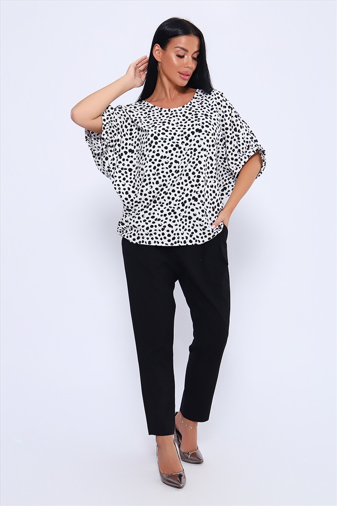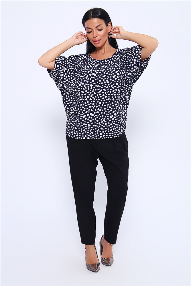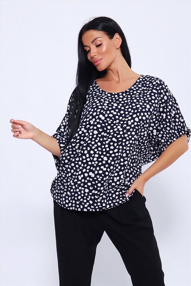 Состав: ПЭ 80%; Вискоза 15%, эластан 5% Модель: Блузка 32728 Тип товара: блузка Материал: индо | индо Бренд: Натали Суслова Карман: без карманов Назначение: для офиса Рейтинг: Рейтинг 4 и выше Рисунок: горошек | крапинка Рукав: короткий рукав Сезонность: лето | осень | весна | зима Силуэт: летучая мышь | свободный Стиль: офисный | повседневный Воротник: без воротника Застежка: без застежки Просторная и удобная блузка из ткани индо. Свободный крой и рукав - летучая мышь, присобранный на резинку, делают эту модель актуальной для любой фигуры. Округлая горловина окантована хлопчатобумажной бейкой, длина рукава указана в замерах по плечу от горловины. Длина блузки чуть ниже линии бедра, по боковым швам низ изделия присборен. Легкая и не мнущаяся ткань индо обеспечивает удобство и комфорт при носке. Благодаря содержанию вискозы в составе ткани, блузка не электризуется и не липнет к телу. Базовые расцветки помогут создать комбинацию и с брюками, и с юбкой, на любой случай жизни. Таблица размеров и веса