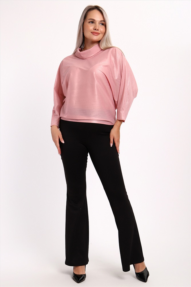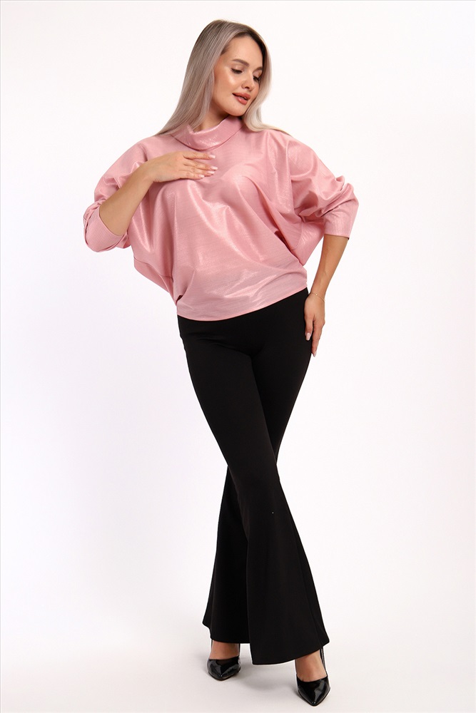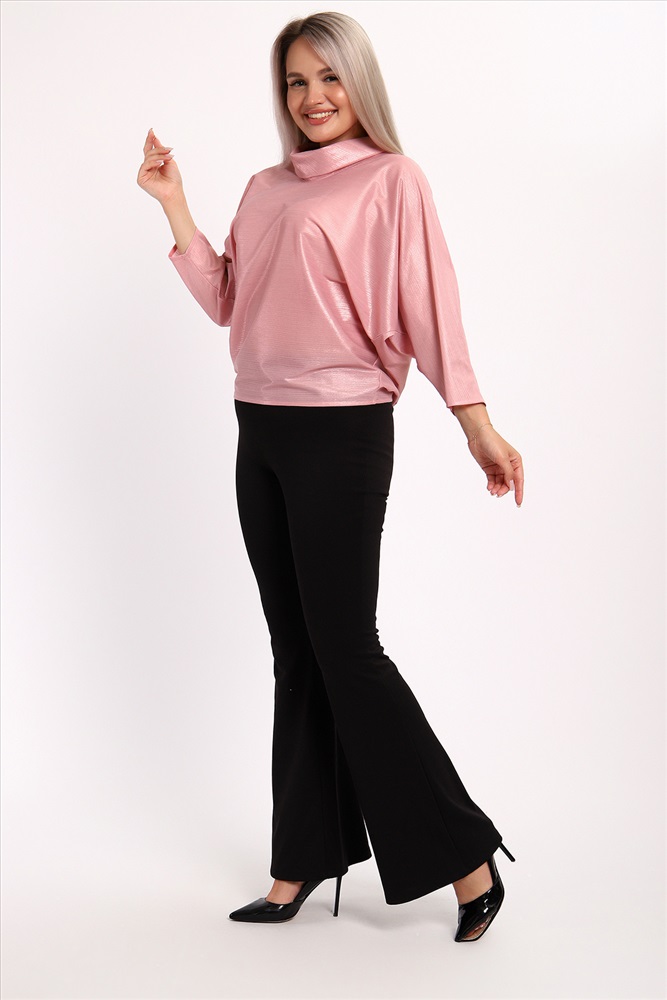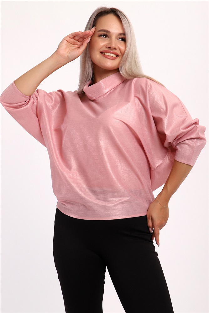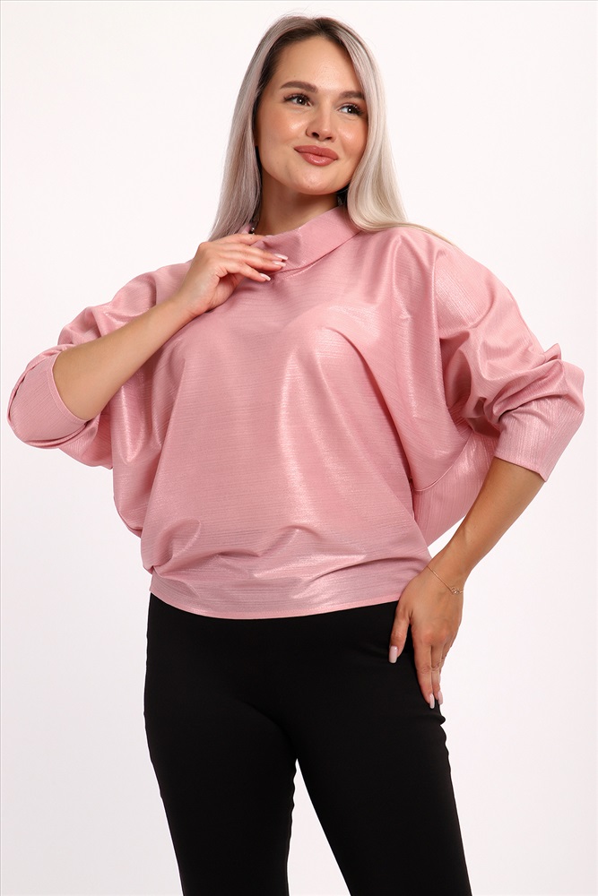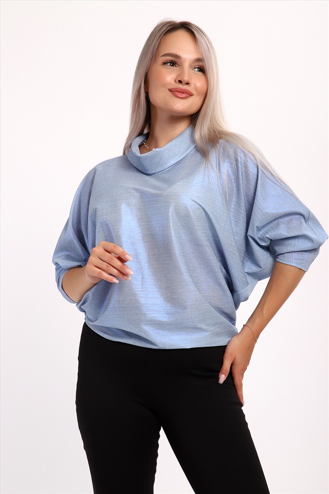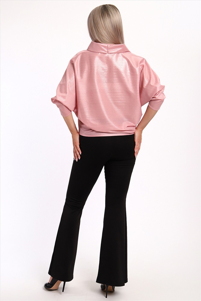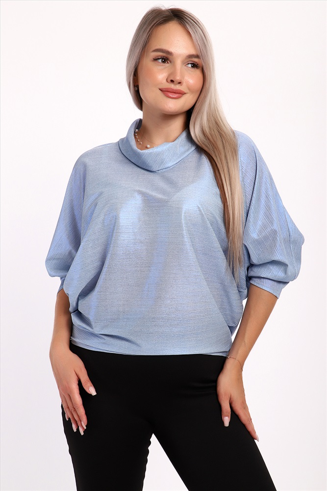 Застежка: без застежки Нарядная и эффектная блузка из ткани шифон- металлик. Ткань тонкая, слегка прозрачная, имеет красивый металлический блеск, переливаясь на складках изделия, не мнется и отлично драпируется. Свободный крой и рукав летучая мышь делает эту блузку универсальной, подходящей на любую фигуру. Длина рукава 3/4, воротник- хомут придает женственности образу. Блузка слегка заужена к низу, чтобы на бедрах образовался напуск. С помощью этой блузки можно создать и праздничный, и деловой, и повседневный образ, комбинировать с юбкой и брюками. Широкий размерный ряд - с 48 по 62 размеры. Рекомендуем стирать изделие в режиме бережной стирки или вручную.