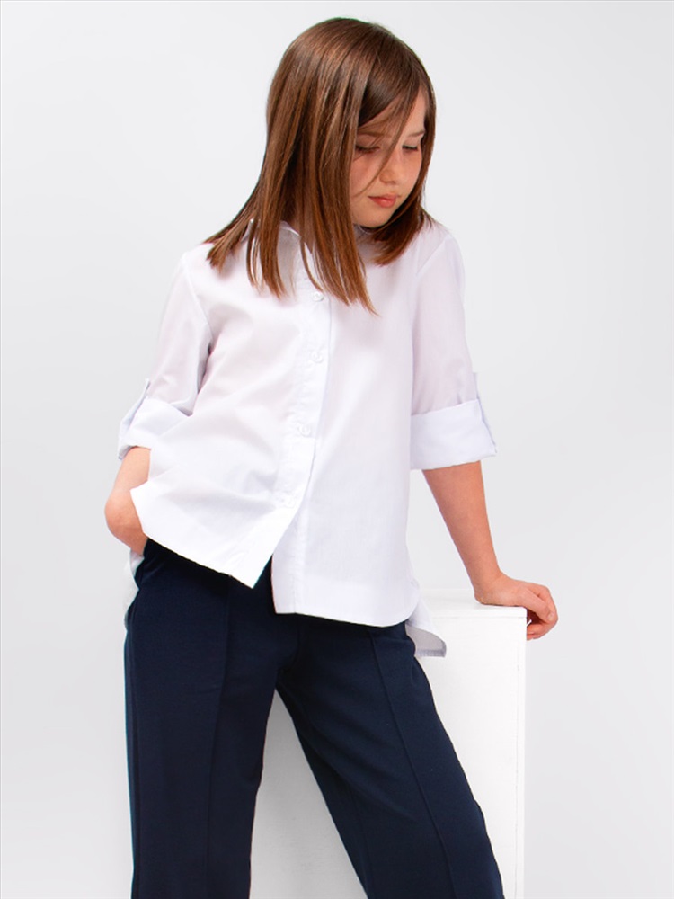 Состав: 100% хлопок Модель: Блузка для девочки хлопковая SP1014 Тип товара: блузка Материал: хлопок плательный | хлопок плательный Бренд: Соль&Перец Длина: средняя длина Карман: без карманов Назначение: для особых случаев Отделка: с манжетами | с патами Рисунок: однотонные Рукав: длинный рукав Сезонность: лето | осень | весна | зима Силуэт: прямой | свободный Стиль: для школы | нарядный Воротник: рубашечный воротник Застежка: пуговицы Блузка для девочки СольПерец на пуговицах. Асимметричная линия низа, рукава трансформируются в 3/4. Блузка прекрасно сочетается как с брюками, так и с юбкой, подчеркнет индивидуальный стиль девочки, и разнообразит ее повседневный школьный образ. Таблица размеров и веса