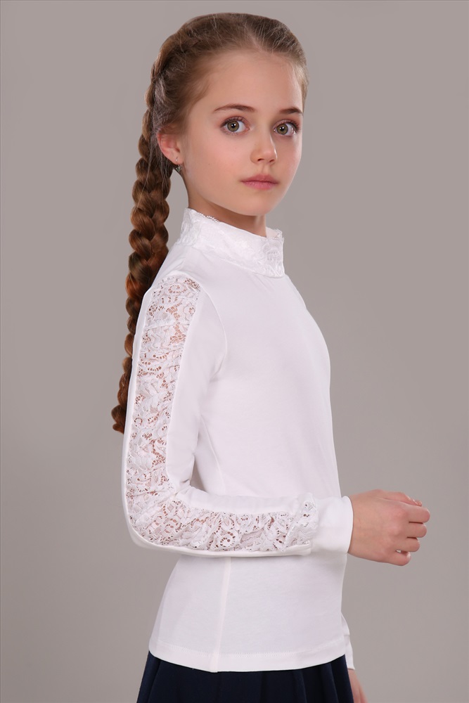 Застежка: без застежки Элегантная и нарядная блузка для вашей маленькой принцессы! Нежная трикотажная блуза для девочки с кружевом станет замечательным выбором для 1 сентября. Ведь осень уже за углом и модная школьная форма для детей - это то, что совсем скоро понадобится каждому школьнику. Воротник стойка декорирован изящным кружевом. Стильная кружевная кофта лонгслив от бренда JerseyLab - это хлопок, нежный трикотаж, который прекрасно дышит и не вызовет аллергию, идеальный вариант для школы для детей и подростков. Такая блузка с длинным рукавом отлично подойдет и как повседневная детская кофточка и как нарядная блузка на праздник или на выпускной. Она превосходно будет смотреться и с различными детскими юбками, и со стильными и удобными брюками. Также очень стильный образ можно получить, сочетая ее со школьным или классическим сарафаном, или комбинезоном. Нежное кружево вокруг горловины придает изящность и оригинальность. Комбинируя эту блузу с различными жакетами и кардиганами, ваша маленькая модница сможет носить ее и в прохладное время года, как в демисезон, так и в зимний период. Пусть ваша стильняшка всегда чувствует себя самой красивой, а мы позаботимся о ее комфорте и безопасности, производя самую стильную и качественную одежду для детей!