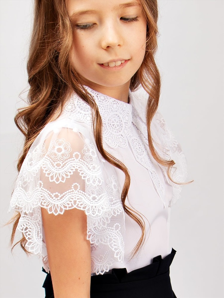 Состав: 70% вискоза, 25% нейлон, 5% спандекс Модель: Блузка для девочки короткий рукав SP013 Тип товара: блузка Материал: вискоза | вискоза Бренд: Соль&Перец Длина: средняя длина Карман: без карманов Назначение: для особых случаев Отделка: с кружевом Рисунок: однотонные Рукав: короткий рукав Сезонность: лето | осень | весна Силуэт: прямой Стиль: для школы | нарядный Воротник: отложной воротник Застежка: пуговицы Блузка для девочки СольПерец. Передняя часть декорирована кружевом, отложной воротник выполнен из кружева, рукава - крылышки выполнены из лёгкого фатина. Мягкий, приятный к телу материал, обеспечит идеальную посадку изделия по фигуре. Прекрасный выбор для создания красивого школьного образа. Таблица размеров и веса
