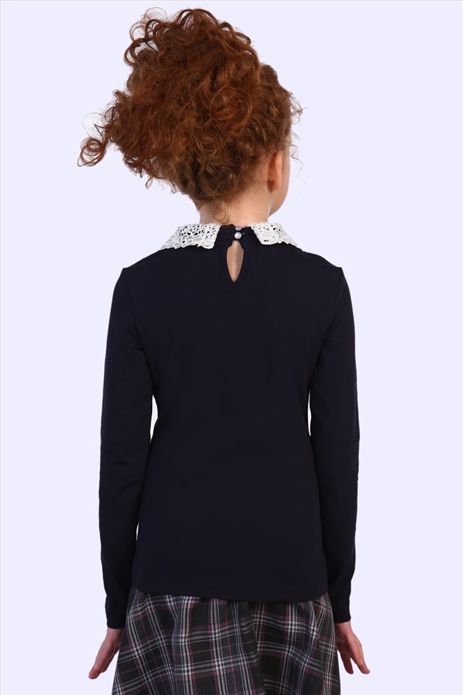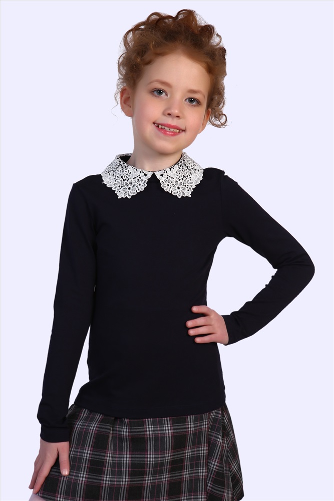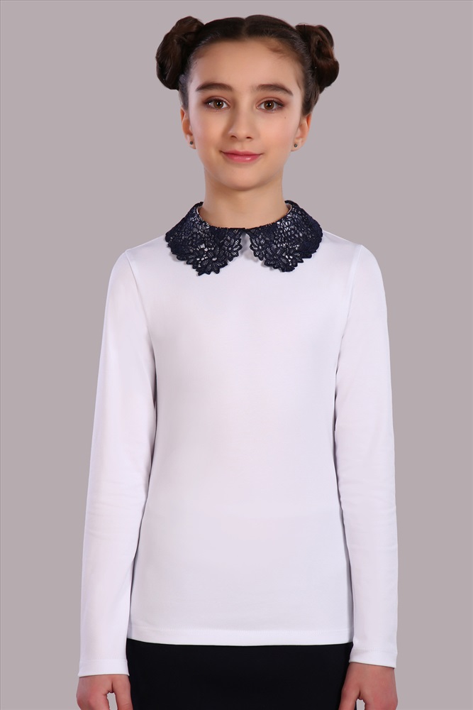 Застежка: пуговицы Школьные блузки для девочек основа, как для повседневного, так и для праздничного наряда. Трикотажная блузка Марта - идеальное сочетание стиля и элегантности. Блузка с длиным рукавом и откидным кружевным воротником - подойдет как одежда для школы с юбкой, сарафаном или брюками.