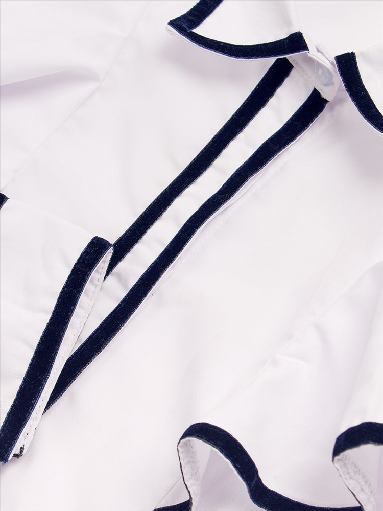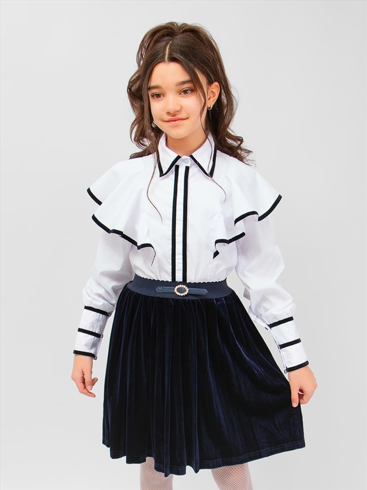 Состав: 100% хлопок Модель: Блузка для девочки с бархатной окантовкой SP1301 Тип товара: блузка Материал: хлопок плательный | хлопок плательный Бренд: Соль&Перец Карман: без карманов Отделка: с тесьмой | с воланами Рисунок: однотонные Рукав: длинный рукав Сезонность: осень | весна | зима Силуэт: прямой Стиль: для школы | нарядный Воротник: рубашечный воротник Застежка: пуговицы Блузка школьная для девочки праздничная нарядная. Предлагаем вашему вниманию красивую, воздушную, блузку школьную для девочки. Нарядная, эффектная белая рубашка с длинным рукавом подходит на девочек младших классов и подростков 10-17 лет. Изделие на пуговицах, украшено вертикальными воланами и тесьмой контрастного цвета. Ткань бенгалин - стрейч обеспечит идеальную посадку кофточки по фигуре. Блузка для девушки прекрасно сочетается с юбкой, сарафаном, и брюками, подчеркнет индивидуальный стиль девочки, и разнообразит ее повседневный школьный образ. Дорогие мамочки, на пороге весна, поэтому, данная модель изделия с длинным рукавом, будет очень выигрышным вариантом на все случаи жизни. На торжественные линейки и школьные праздники: первое сентября, выпускной, последний звонок. Если позволяет погода, то такую блузочку можно одеть как самостоятельный элемент без жакета или пиджака. Особенно хорошо она будет смотреться с красивыми весенними сапогами, туфлями, балетками. Ткань изделия 100% хлопок, поэтому оно очень хорошо отстирывается, не образовывает катышки, не садится после многочисленных стирок. Также в нашем интернет-магазине вы можете выбрать сопутствующие товары для школы. Все вещи СольПерец достойного качества, изготовлены с любовью и заботой о ваших детях! Таблица размеров и веса
