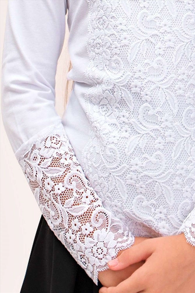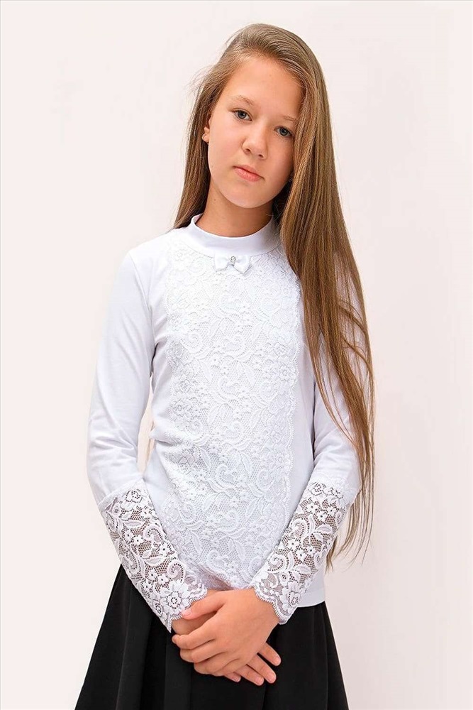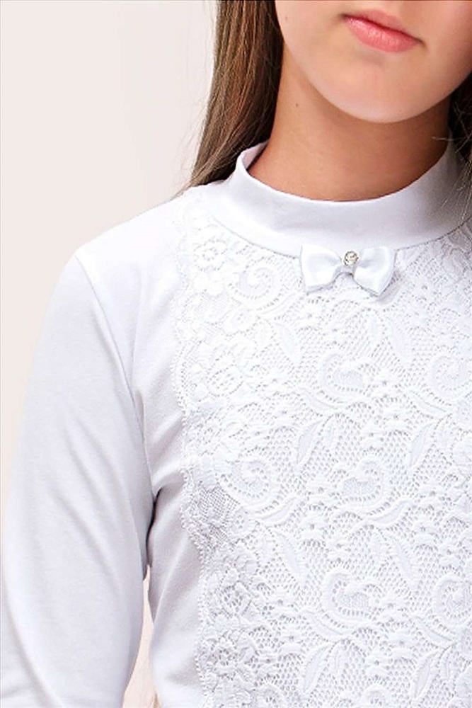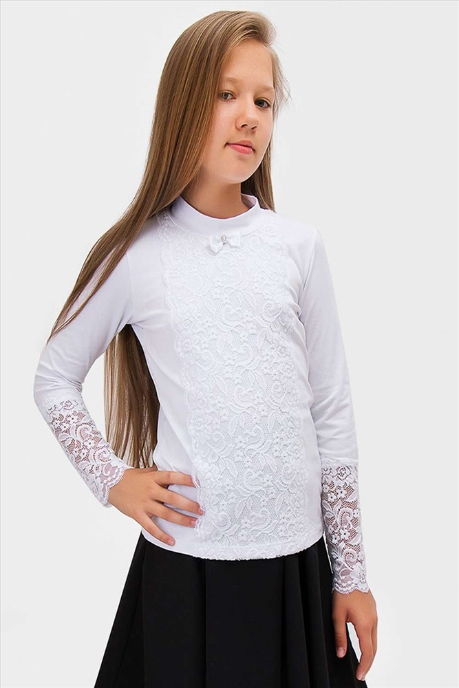Застежка: без застежки Белый гипюр образует цветочный, набивной узор, горло - стойка. Мягкий, приятный к телу трикотаж, обеспечит идеальную посадку изделия по фигуре. Гармонично вольется как в школьный, так и в праздничный гардероб. Размер 122 (рост 116-122 см) длина изделия 50 см, полуобхват груди 32 см, длина рукава 51 см. Размер 128 (рост 122-128 см) длина изделия 53 см, полуобхват груди 34 см, длина рукава 54см. Размер 140 (рост 128-134 см) длина изделия 56 см, полуобхват груди 36 см, длина рукава 56 см. Размер 146 (рост 134-140 см) длина изделия 58 см, полуобхват груди 38 см, длина рукава 58 см.